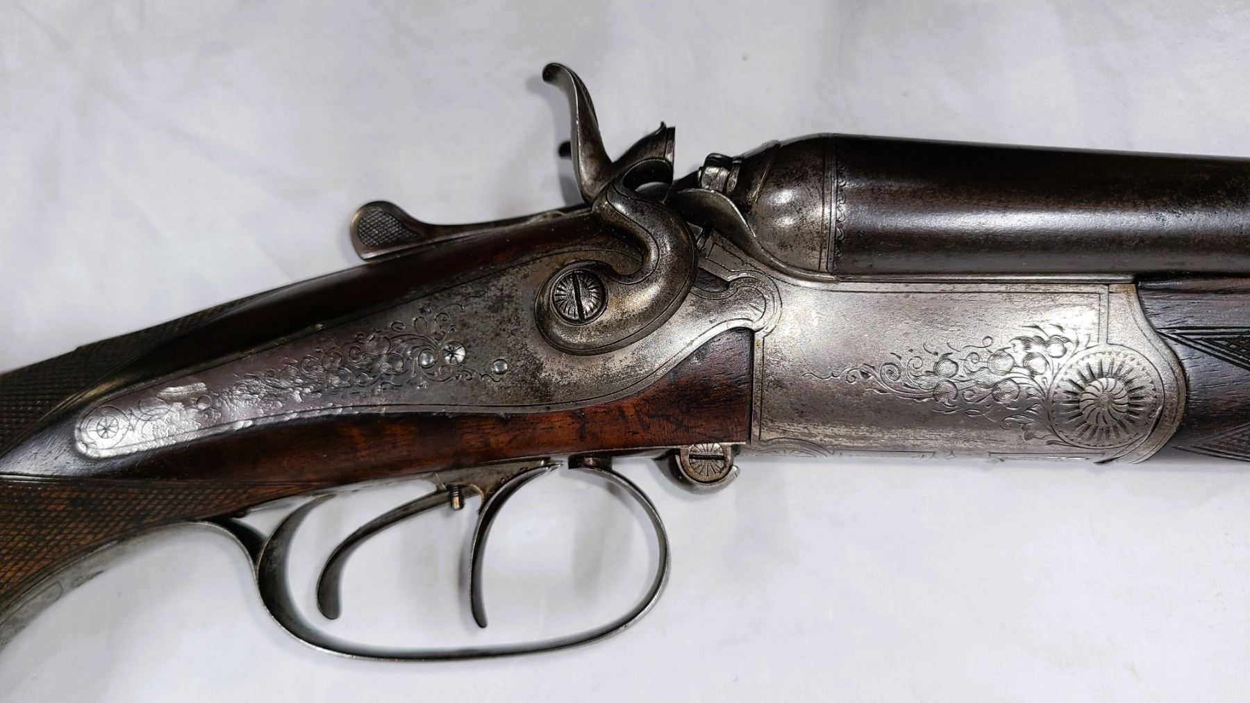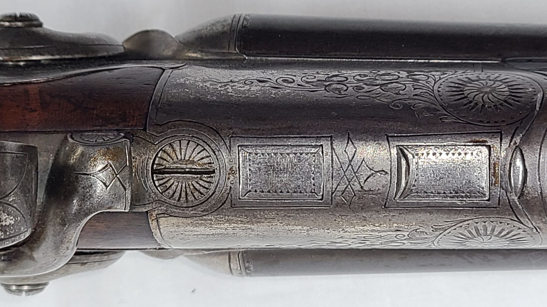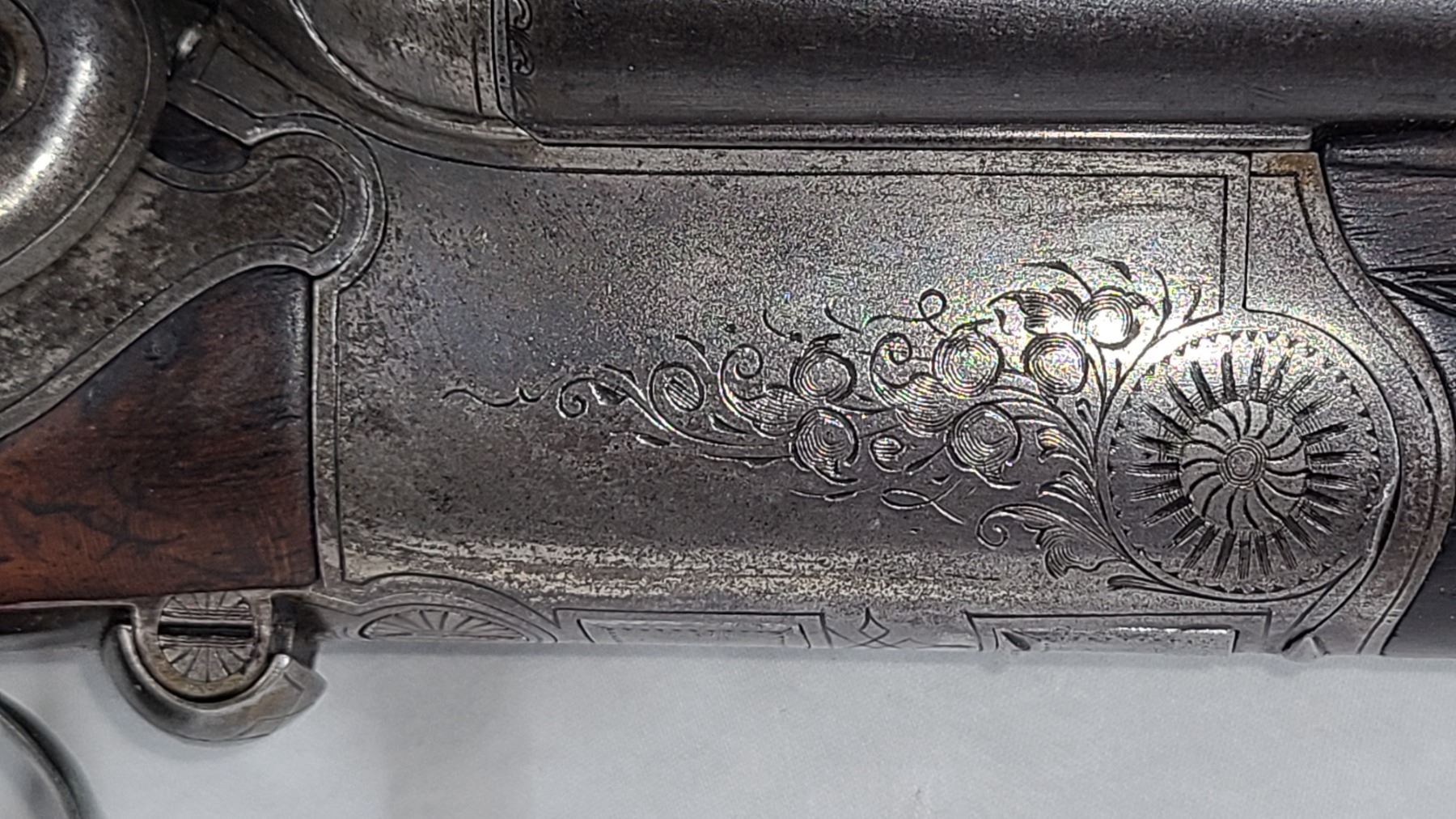 Condition. Very good with fine engraving all over. The barrels are retaining about 50% bluing.