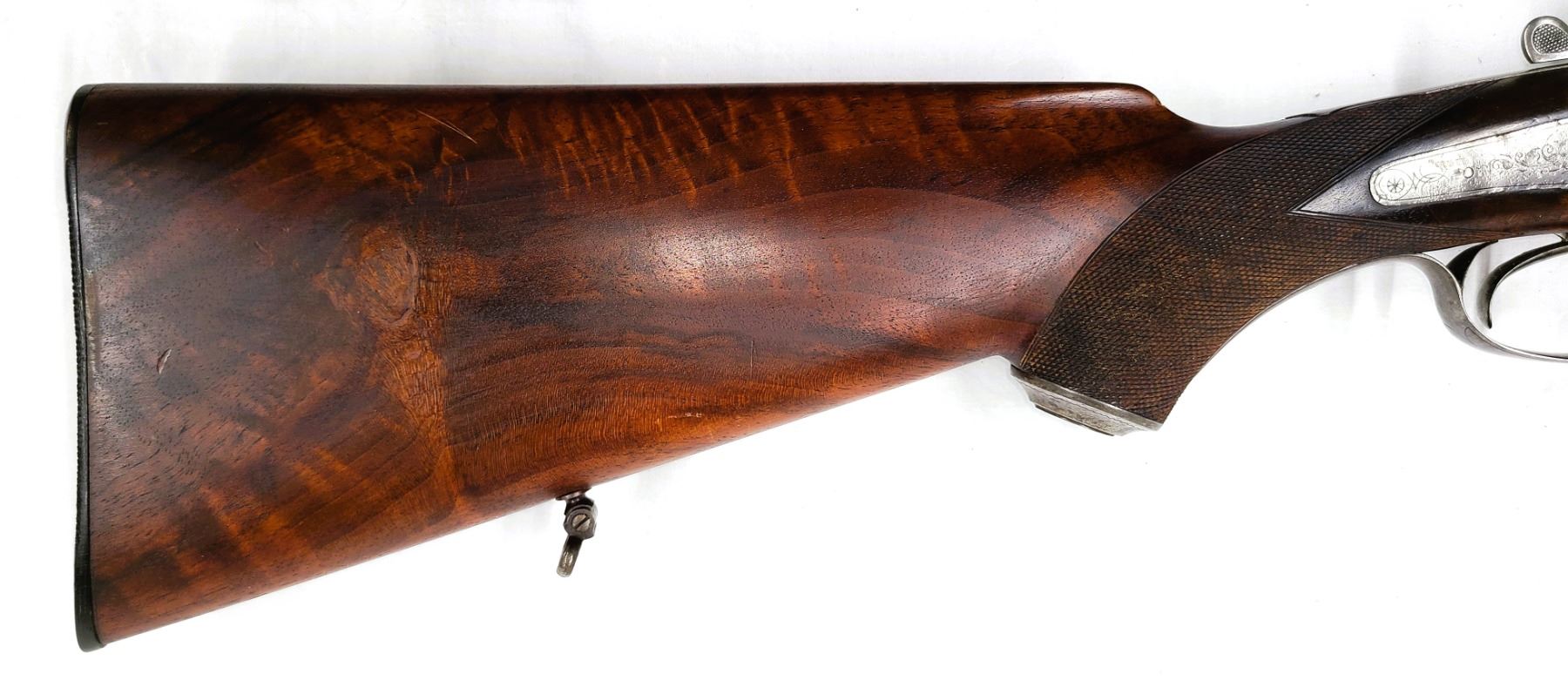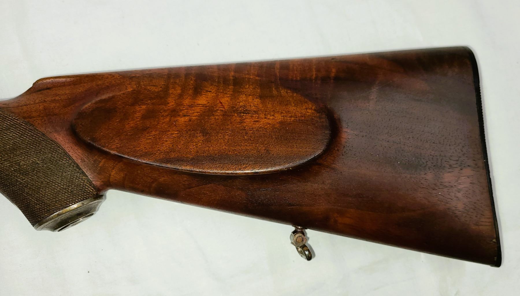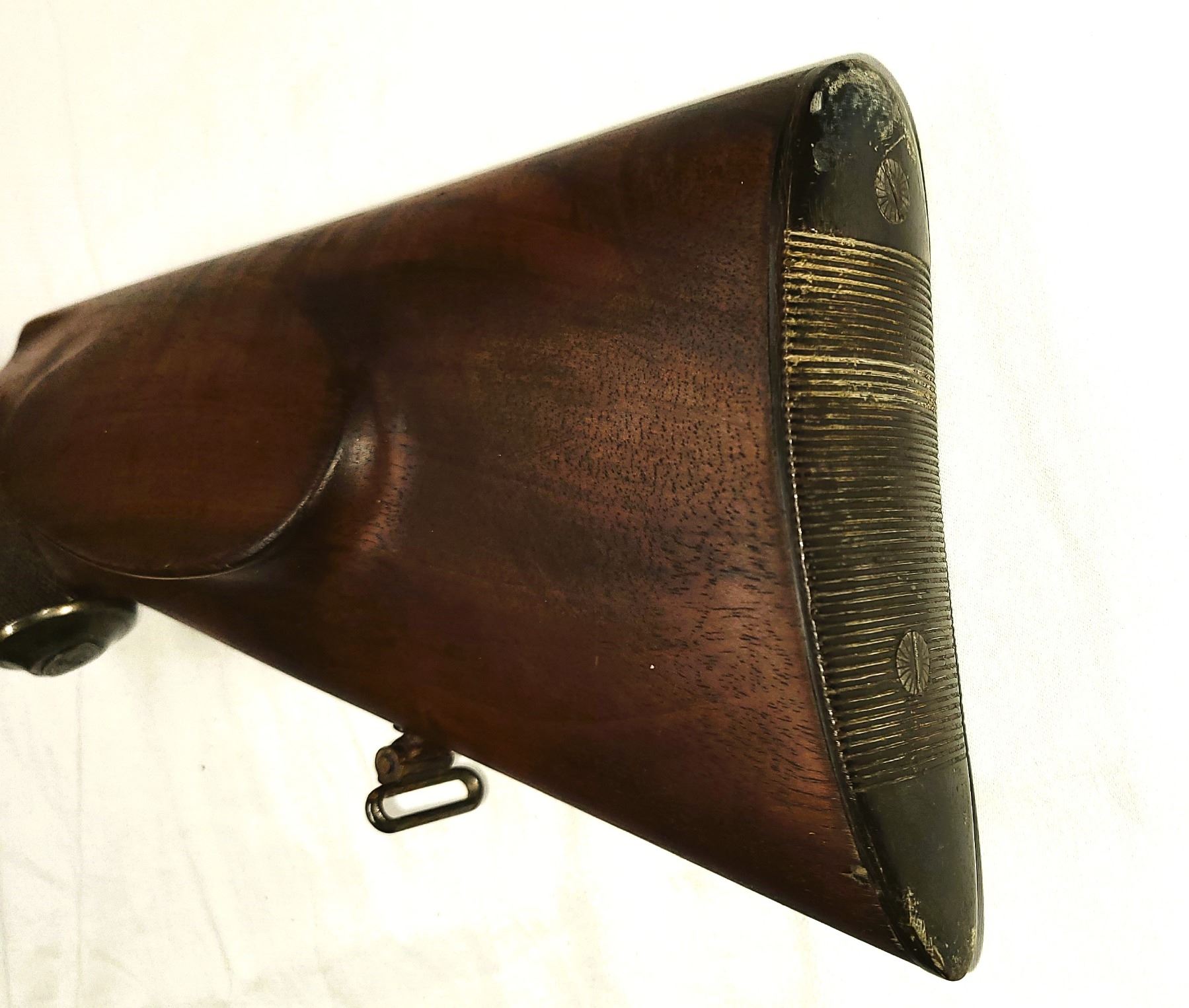 rest and checkered horn butt. and smaller sling swivels.