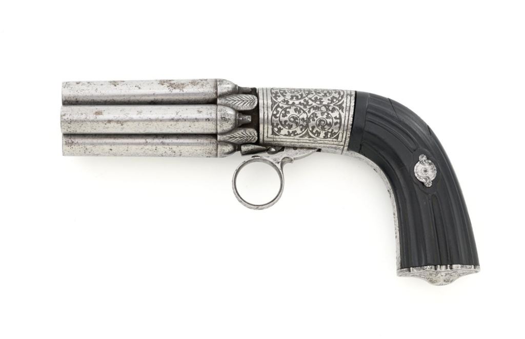 Engraved Belgian Mariette Brevete Five-Barrel Pepperbox Pistol
