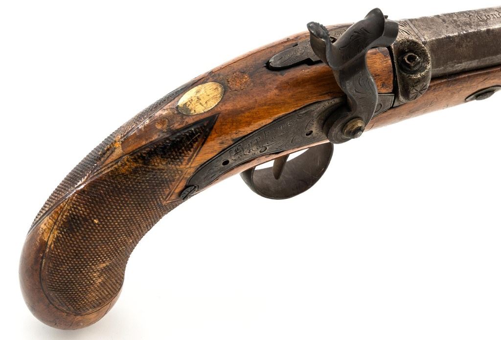Engraved English Hopkins Single Shot Back Action Percussion Pistol