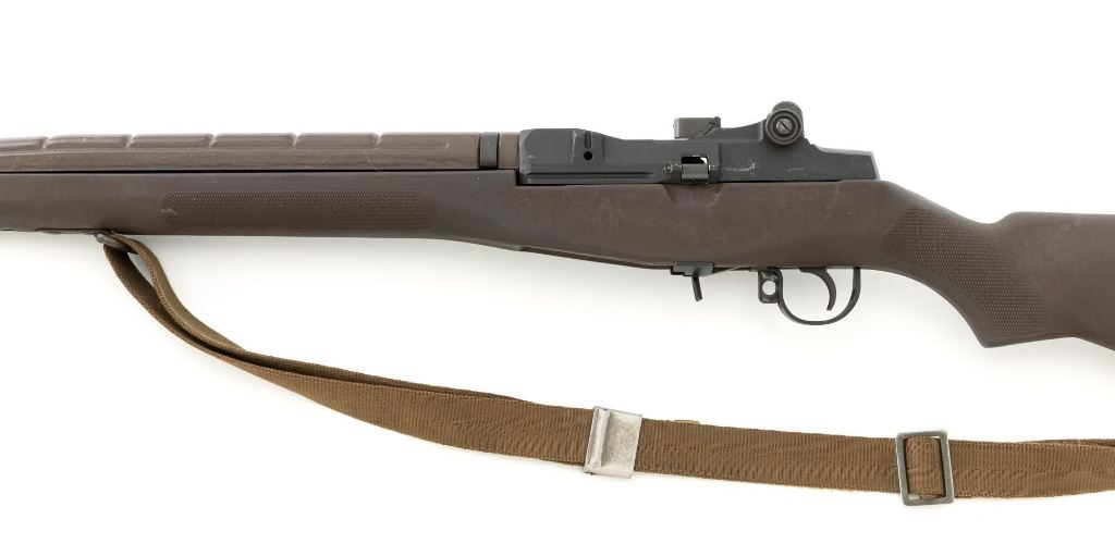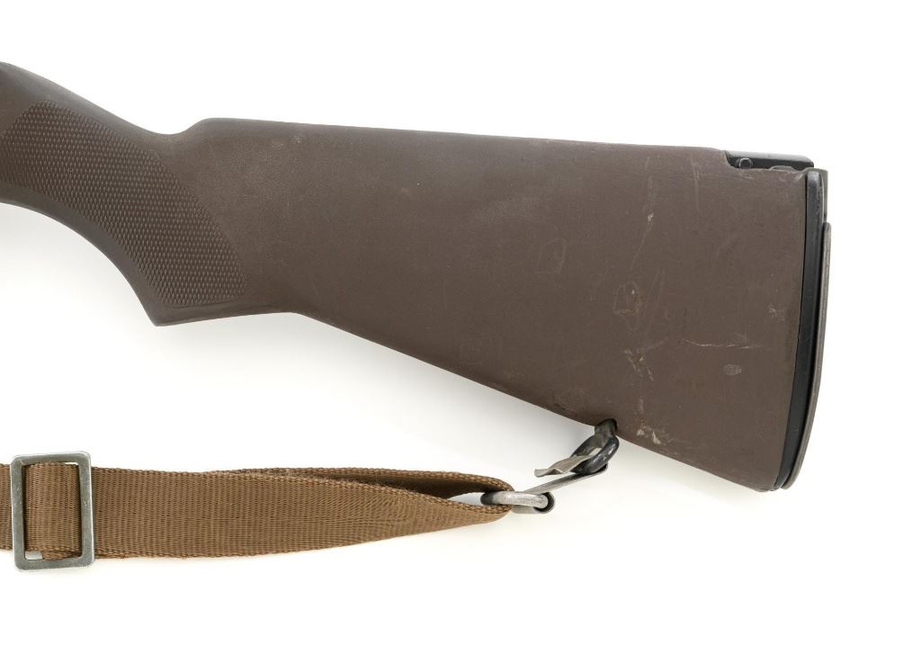 Enterprise Arms U.S. Rifle Model M14A2 Semi-Automatic Rifle, #E-00475, 7.62x51 NATO cal., 22" stainless steel barrel with muzzle brake, black oxide finish on the receiver, checkered composition two-piece pistol grip stock with sling swivels and an OD green nylon rifle sling, no magazine, protected blade front sight, and adjustable rear aperture sight. Marked "ABNI" on the receiver for ABN Industrial, Buena Park, CA. ABNI was a subcontractor for Enterprise. Enterprise Arms of Irwindale, CA mfgd approx. 2,000 receivers from 1996-97. Rifle is in fine overall condition, with a bright stainless steel barrel and the receiver displaying considerable factory finish with scrapes and edge wear. Stock is in very good condition, with numerous scrapes and scuffs consistent with use. Buttstock ends with a checkered steel flip-up shoulder support, providing a 13.25" LOP. Action functions well. Bore is bright with defined rifling. Est.: $800-$1,200. (Modern)