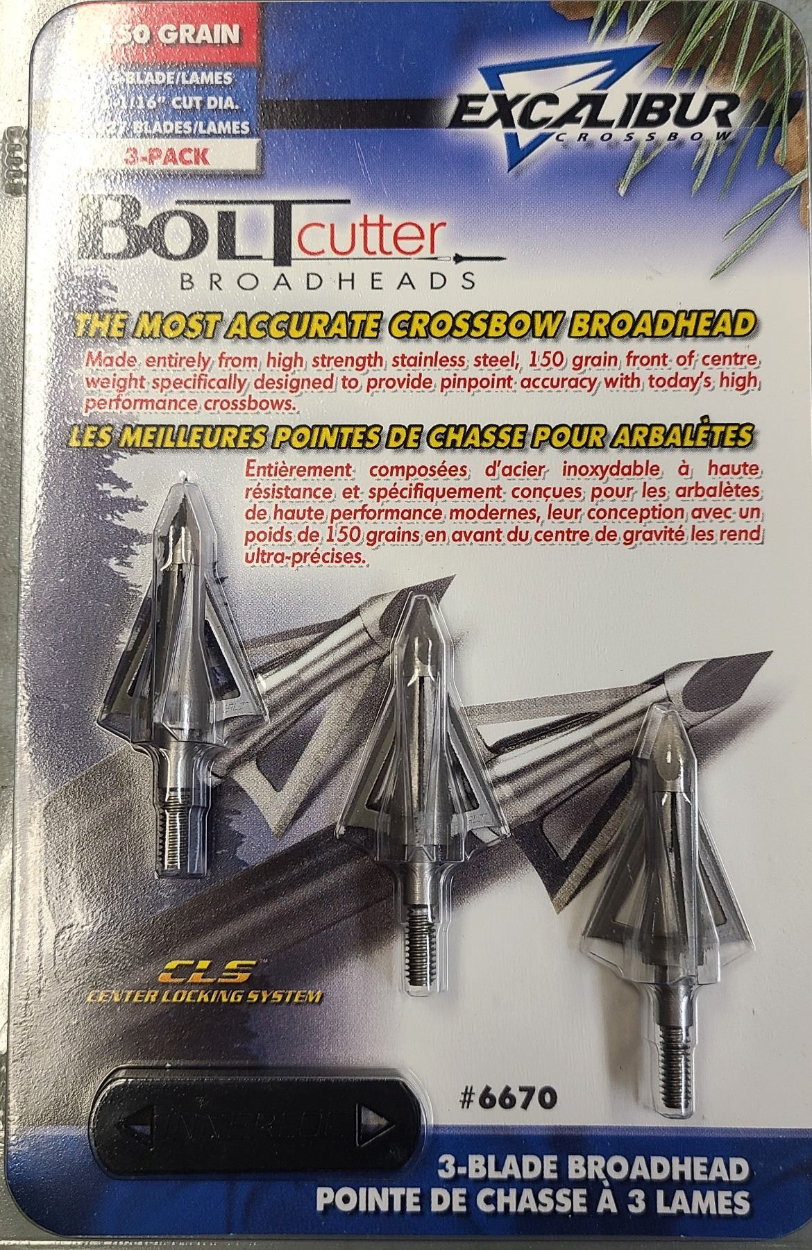 Excaliber Bolt Cutter Broadheads - Set of 3 Boltheads NEW 150 grain 3 Blade