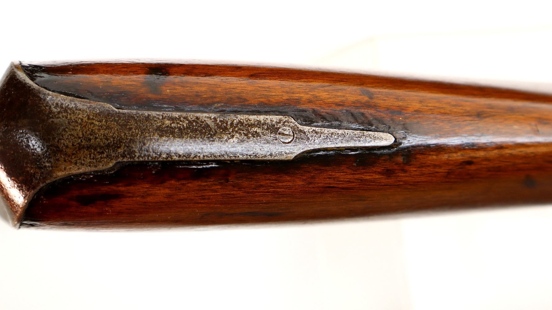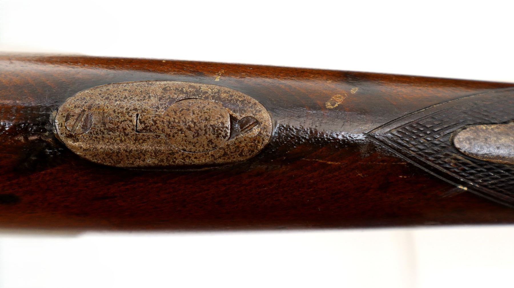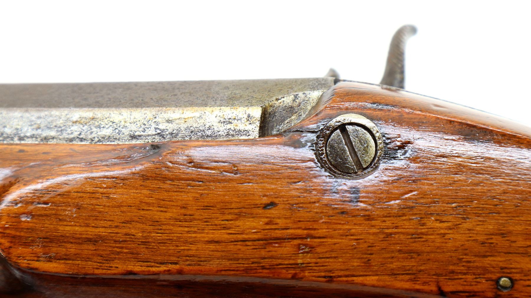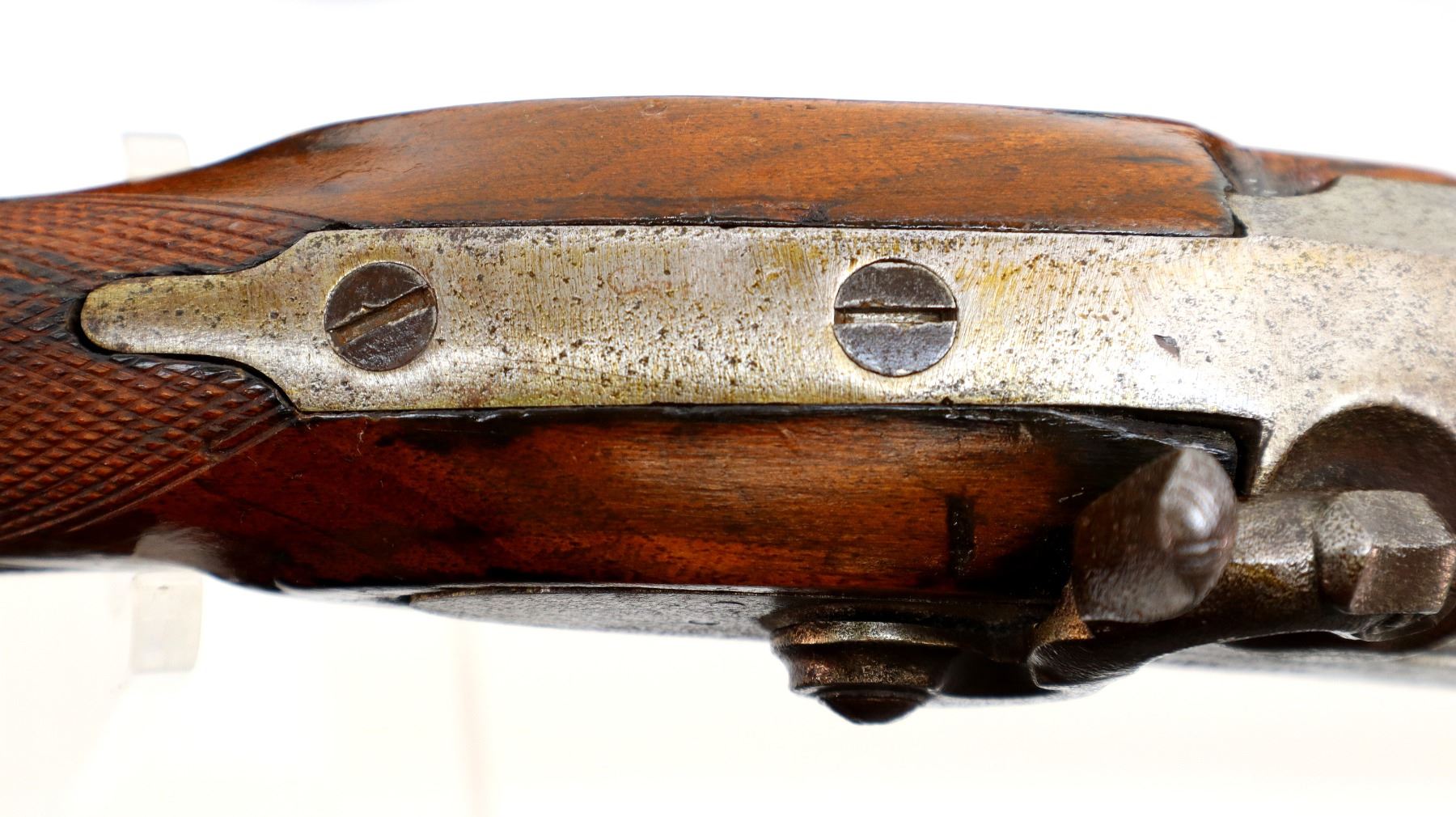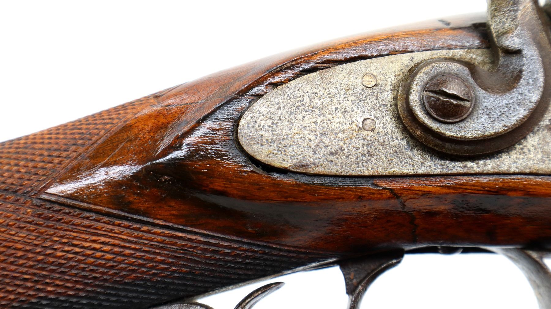 Wear: Metal finish turning silver grey with pitting, light rust speckles, scratches, handling marks and wear. Stock shows marks, scratches and wear.