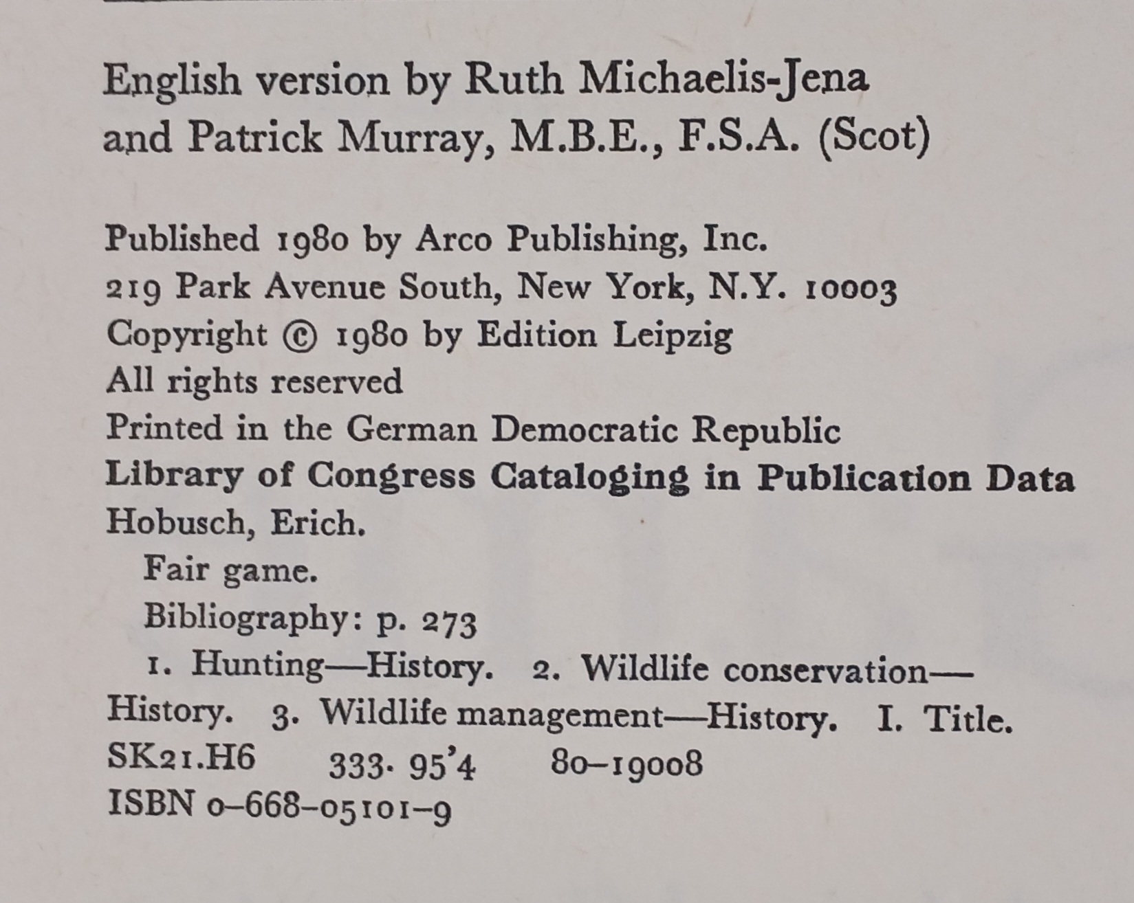 "FAIR GAME" BY ERICH HOBUSCH - HARDCOVER