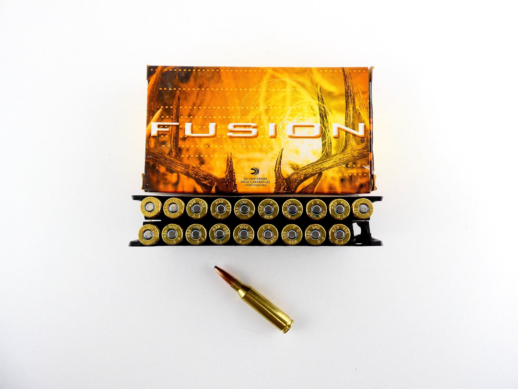 LOT INCLUDES; APPROX. (20) RNDS, 120 GRNS (STATED ON BOX NOT CONFIRMED), FUSION.