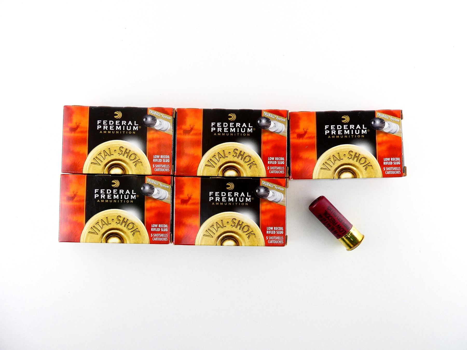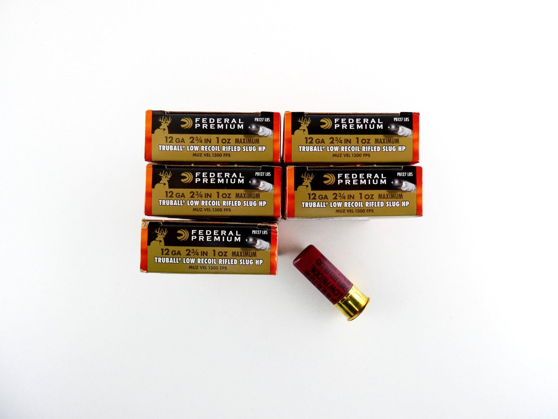 LOT INCLUDES; APPROX. (25) RNDS, SHOT SIZE #RIFLED SLUG HP, TRUBALL LOW RECOIL.