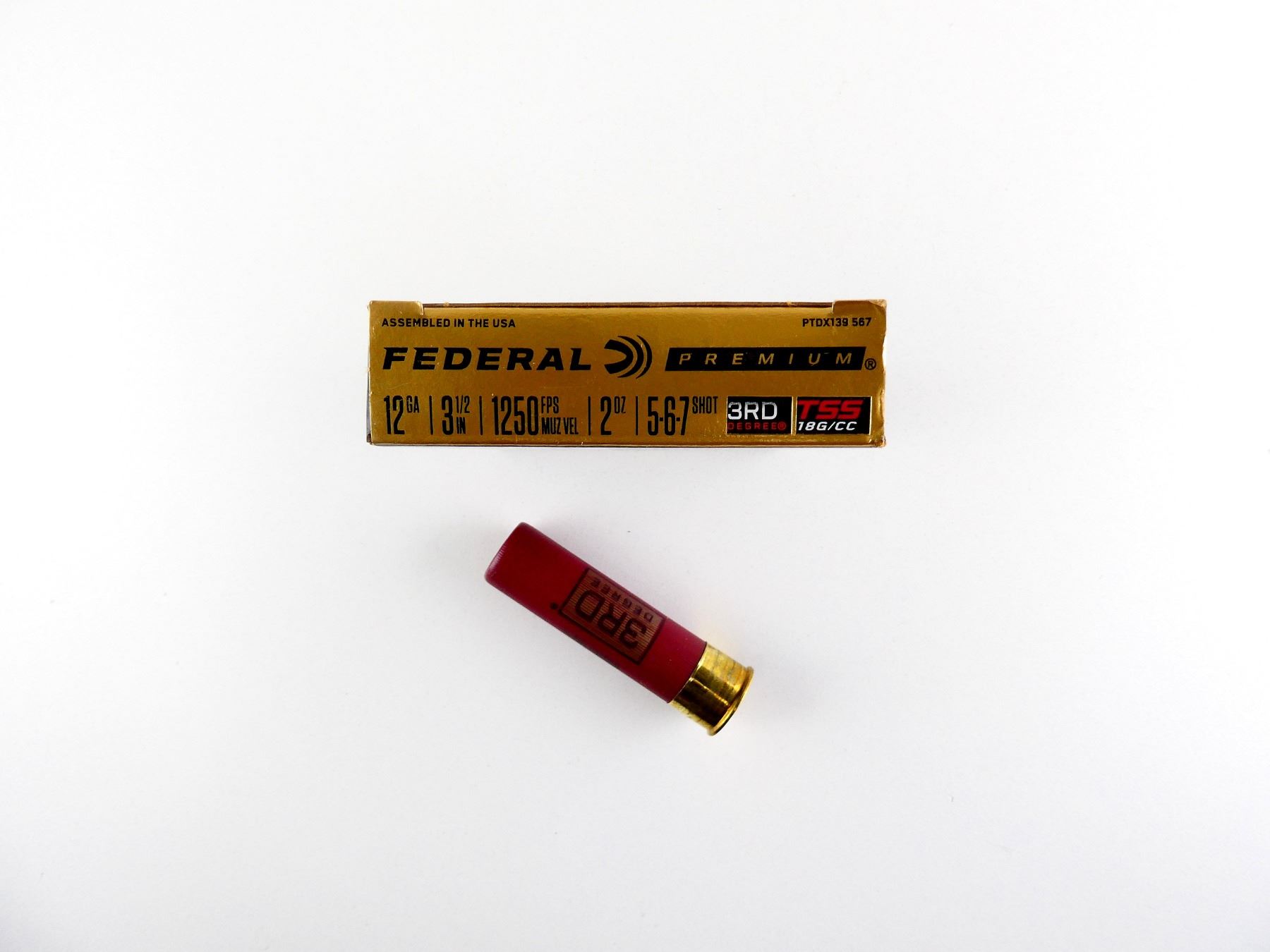 LOT INCLUDES; APPROX. (5) RNDS, SHOT SIZE #5-6-7 SHOT, TSS 18G/CC, 2 OZ, 3RD DEGREE.