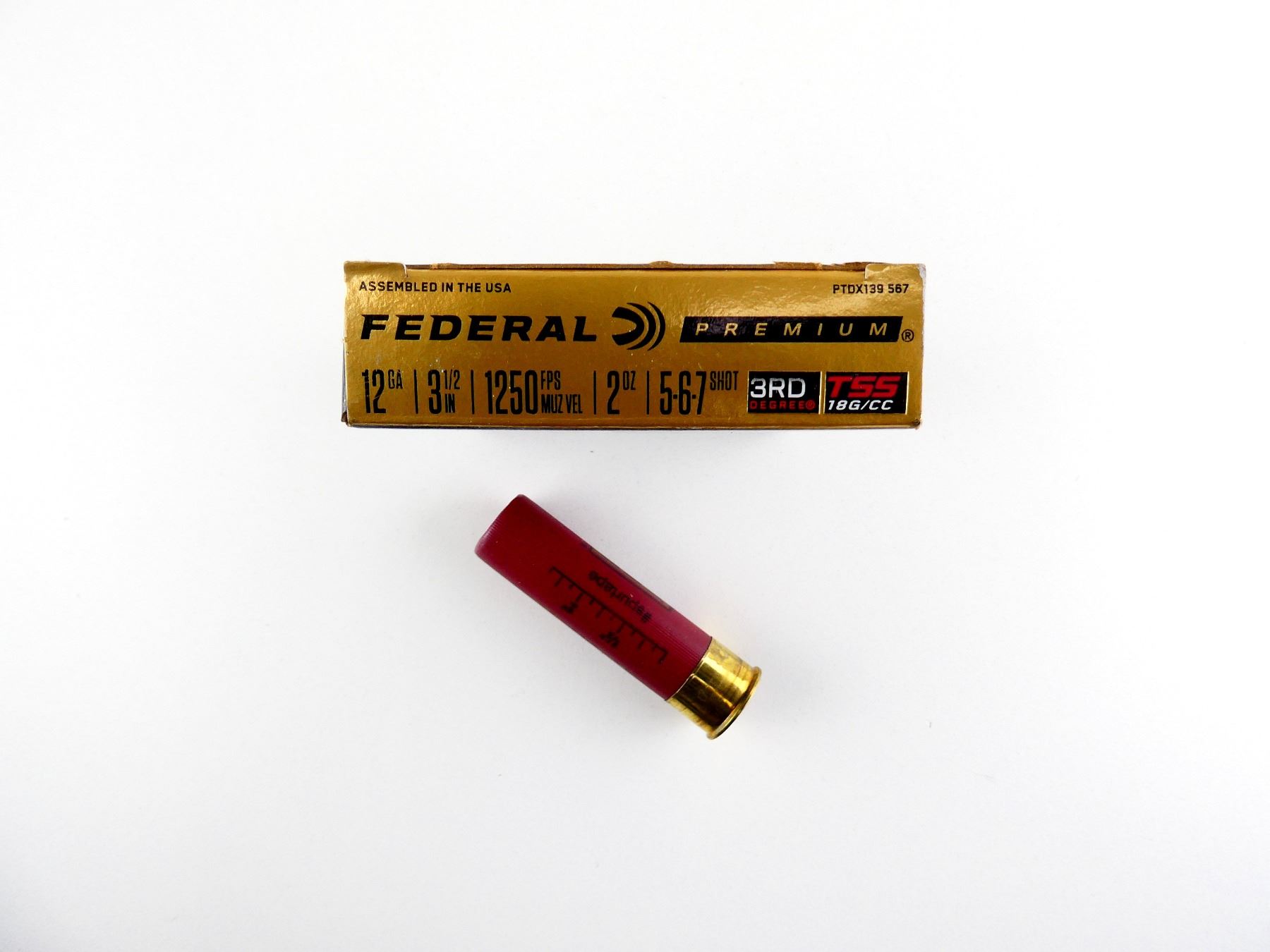 LOT INCLUDES; APPROX. (5) RNDS, SHOT SIZE #5-6-7 SHOT, TSS 18G/CC, 2 OZ, 3RD DEGREE.