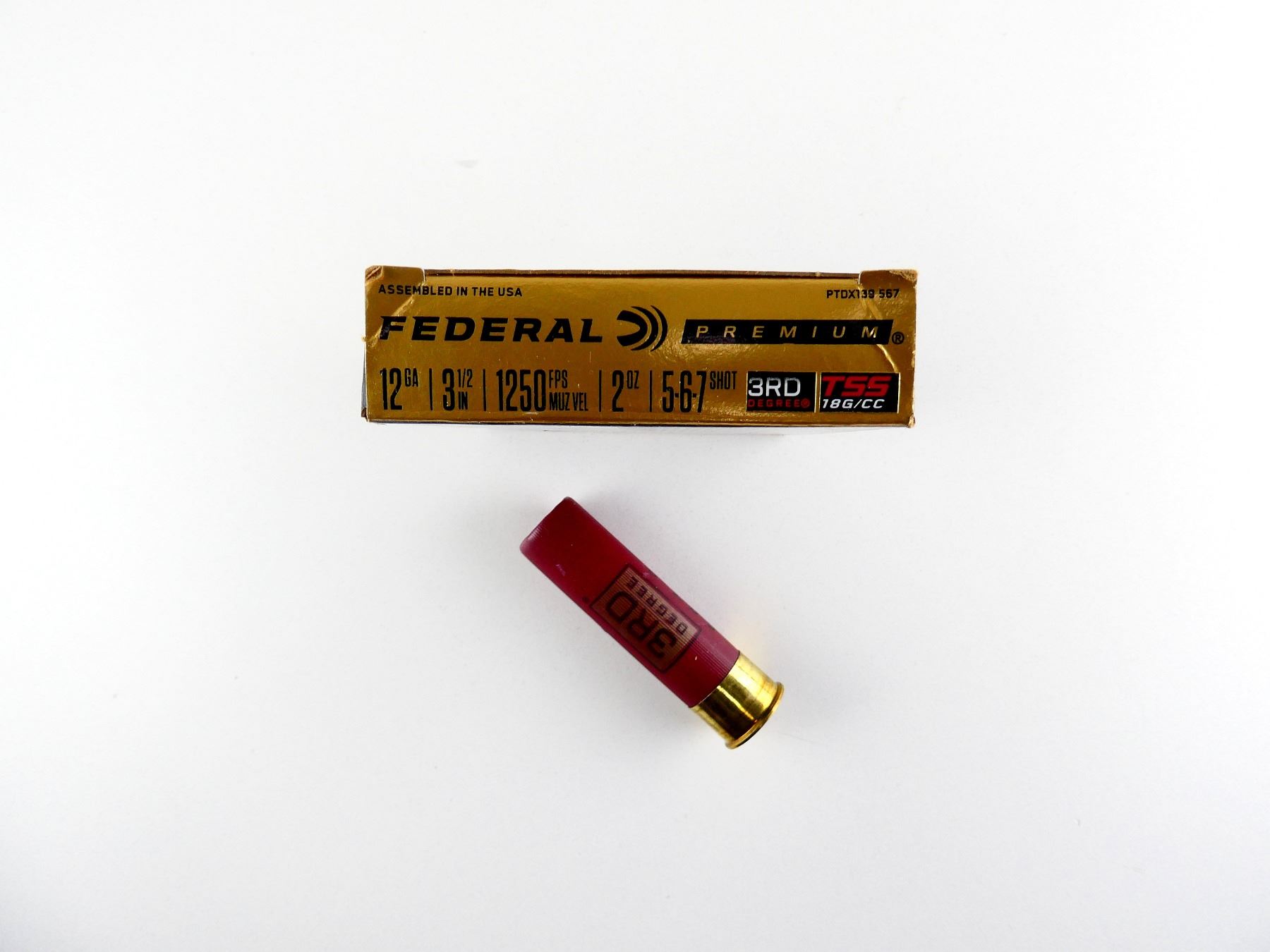 LOT INCLUDES; APPROX. (5) RNDS, SHOT SIZE #5-6-7 SHOT, TSS 18G/CC, 2 OZ, 3RD DEGREE.