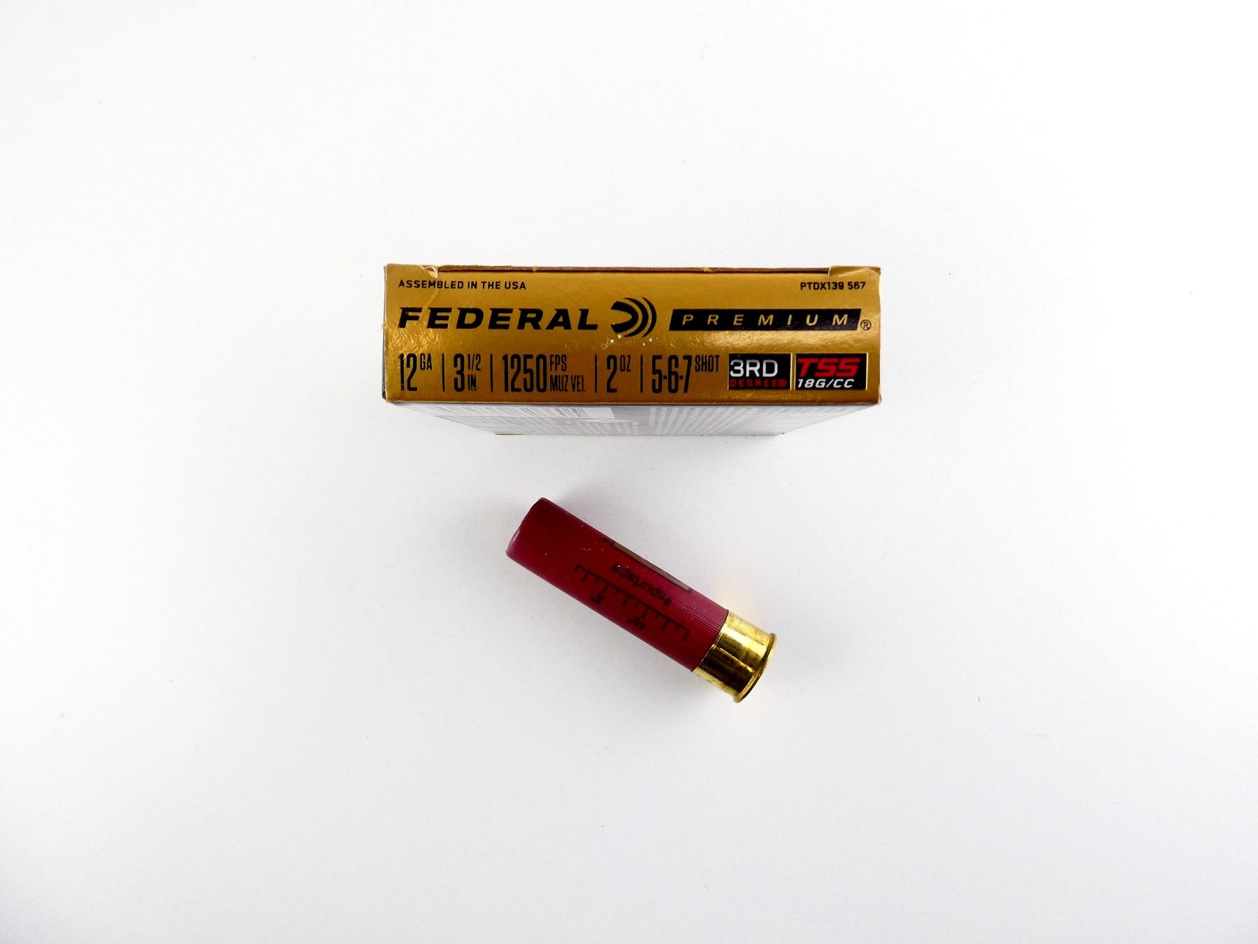 LOT INCLUDES; APPROX. (5) RNDS, SHOT SIZE #5-6-7 SHOT, TSS 18G/CC, 2 OZ, 3RD DEGREE.