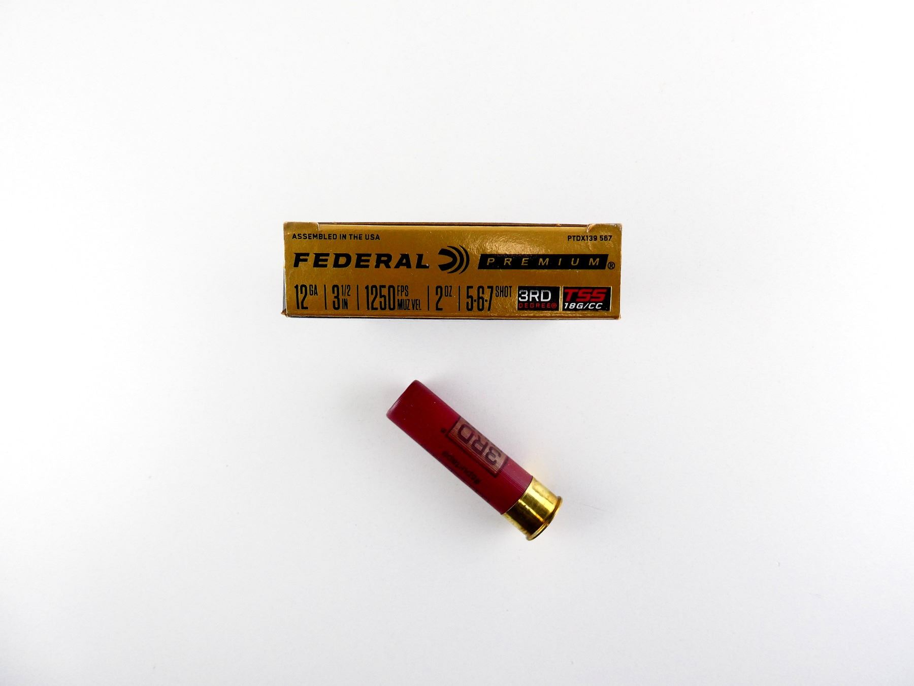LOT INCLUDES; APPROX. (5) RNDS, SHOT SIZE #5-6-7 SHOT, TSS 18G/CC, 2 OZ, 3RD DEGREE.