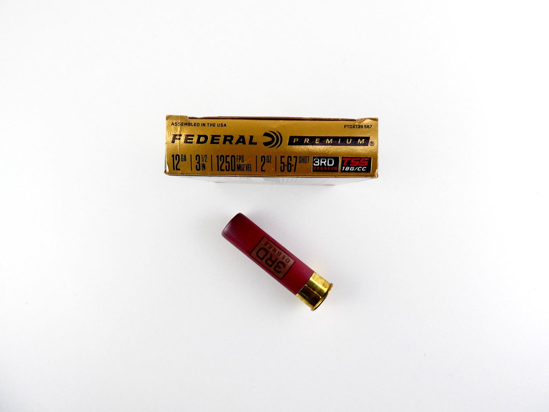 LOT INCLUDES; APPROX. (5) RNDS, SHOT SIZE #5-6-7 SHOT, TSS 18G/CC, 2 OZ, 3RD DEGREE.
