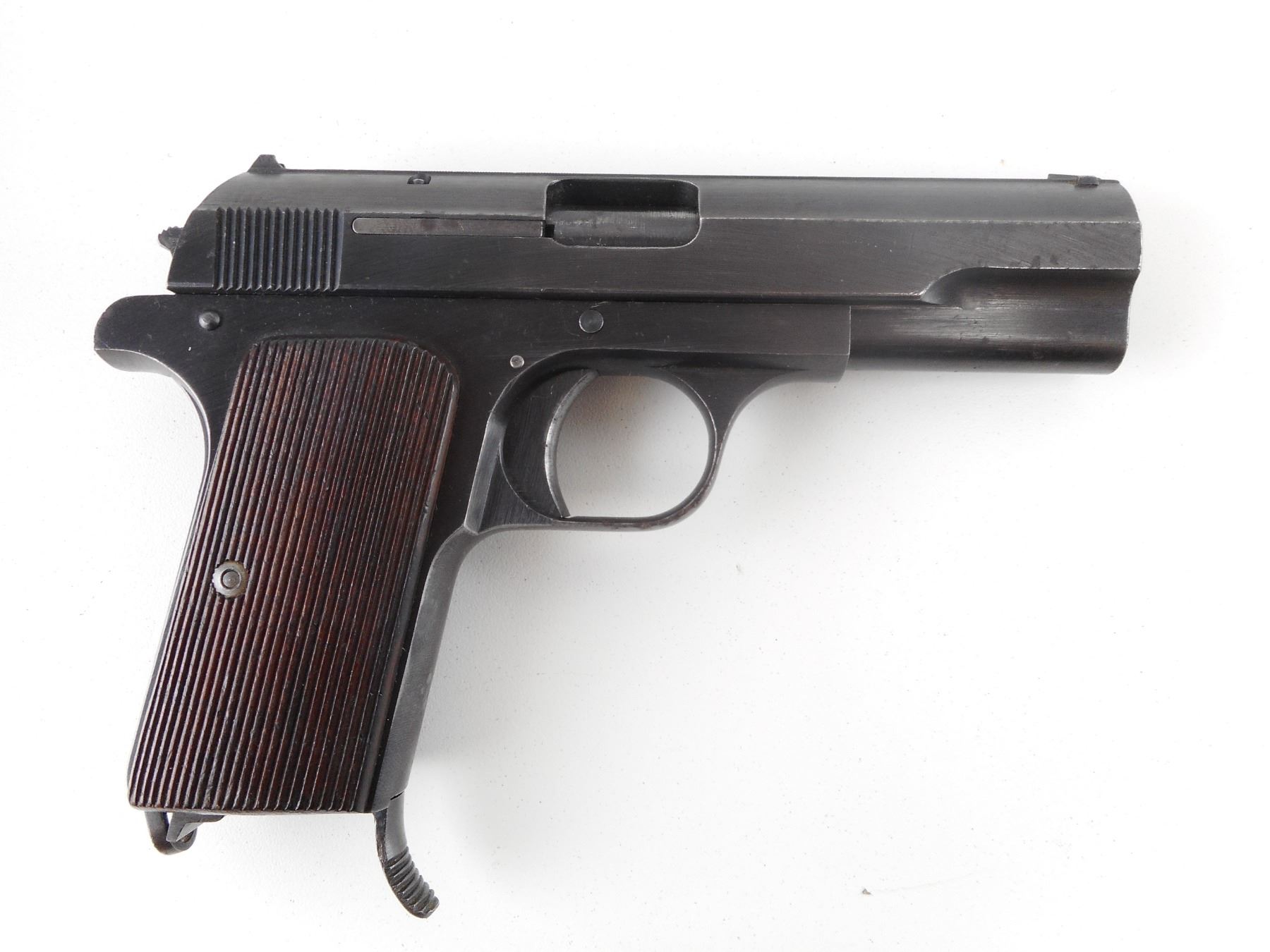 FEG , MODEL: P MOD 37 , CALIBER: 7.65MM , COMES WITH MAGAZINE. BORE IS GOOD. DATED 1943, NUMEROUS GERMAN MILITARY MARKS. BLADE FRONT AND RAISED NOTCH REAR SIGHTS. WOOD GRIP PANELS. FINGER GRIP MAGAZINE. SHOWS SOME HANDLING MARKS. , ACTION: SEMI AUTOMATIC HANDGUN , BARREL LENGTH: 97MM , STOCK # P3080 , SERIAL # 67626 , CONDITION: 6/10 , CLASS: CANADIAN CLASS PROHIBITED, THIS ITEM WILL NOT BE SOLD IN LOT ORDER. THE PROHIBITED ITEMS WILL BE SOLD AFTER THE DEACTIVATED CLASS 5000 SERIES AND BEFORE THE 3000 SERIES NON RESTRICTED. PLEASE SEE LOT 0C LOT LEGEND FOR FULL DETAILS
