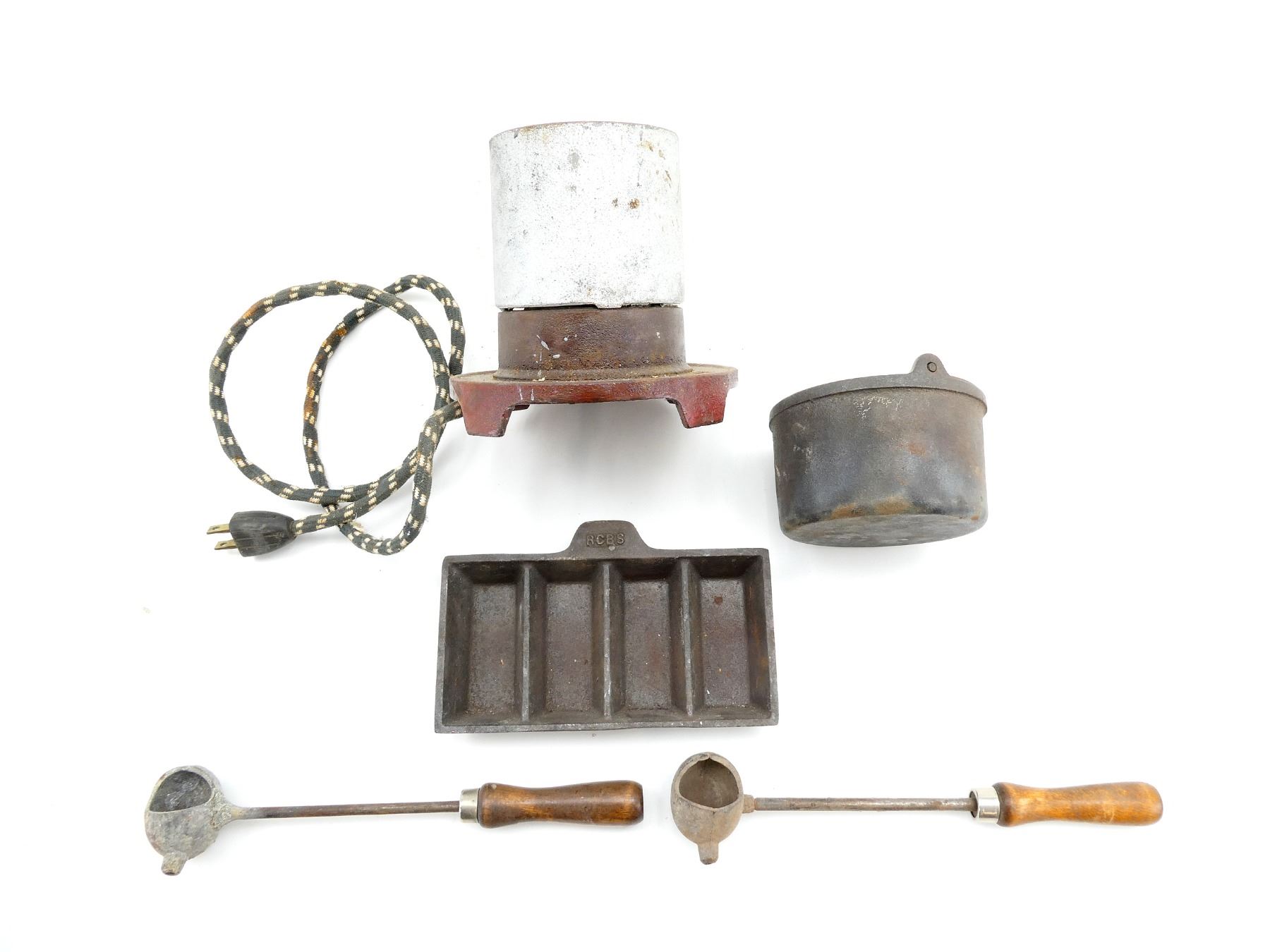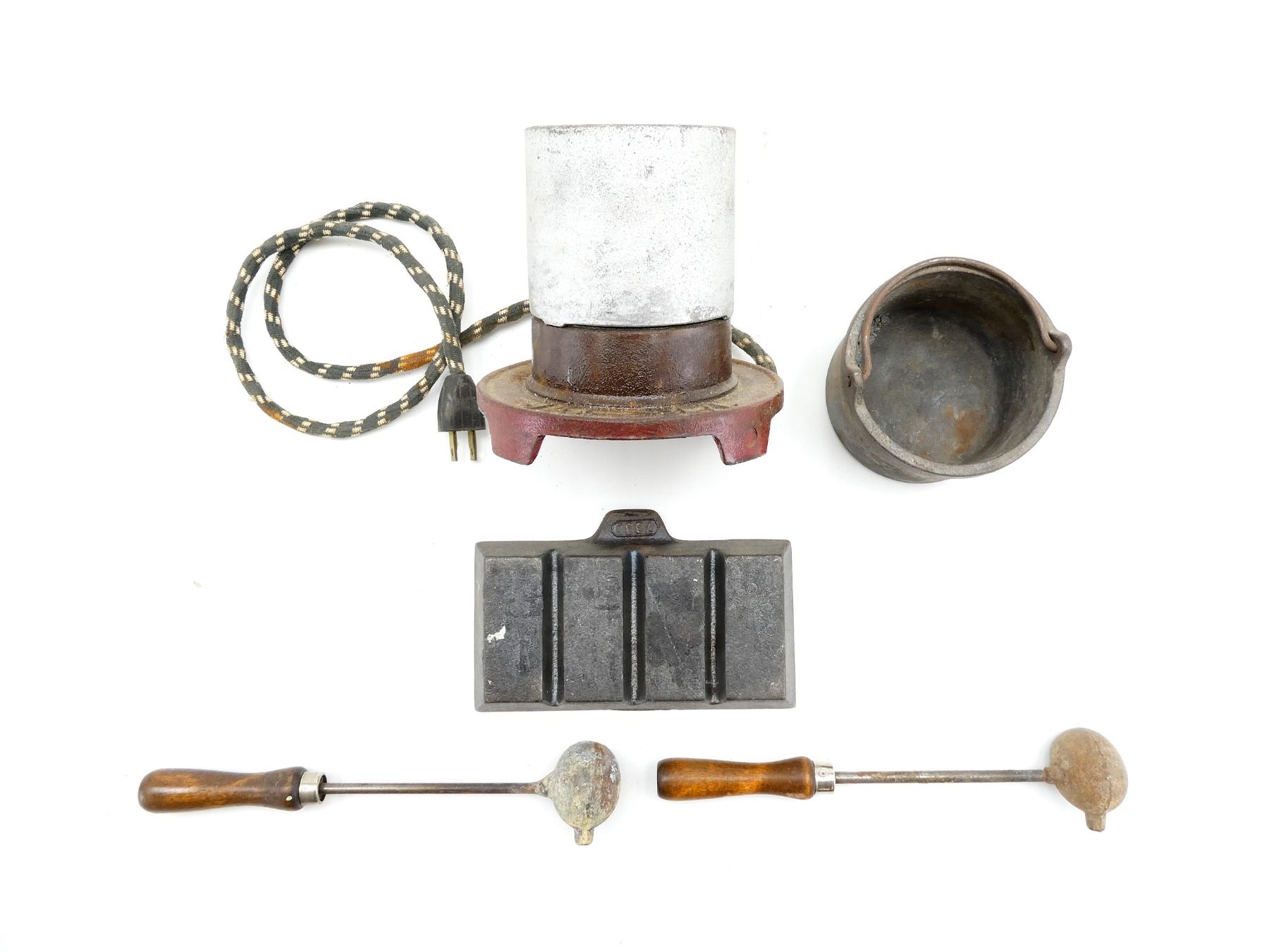 FISHER LEAD MELTING POT AND LEAD ACCESSORIES LOT