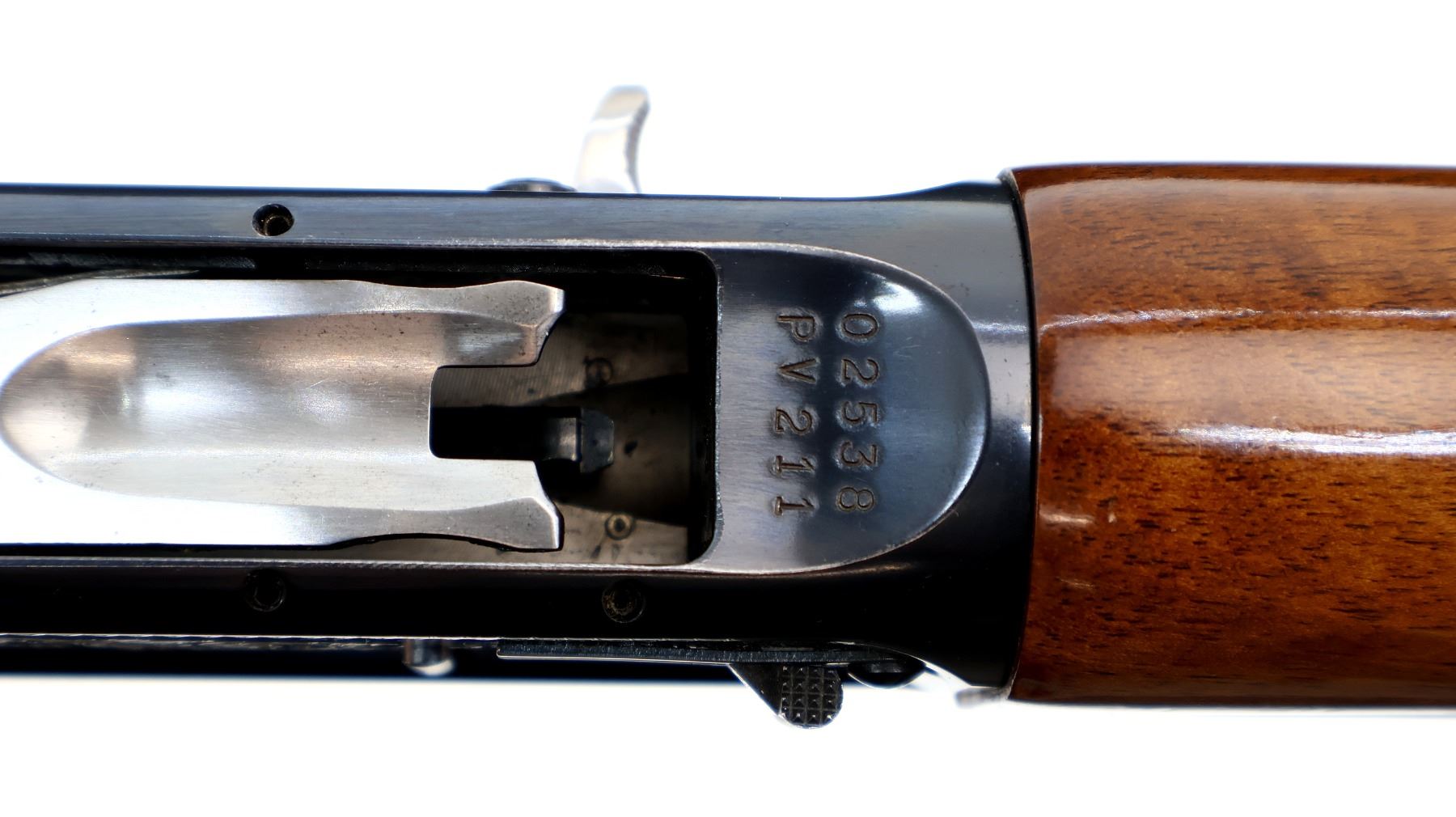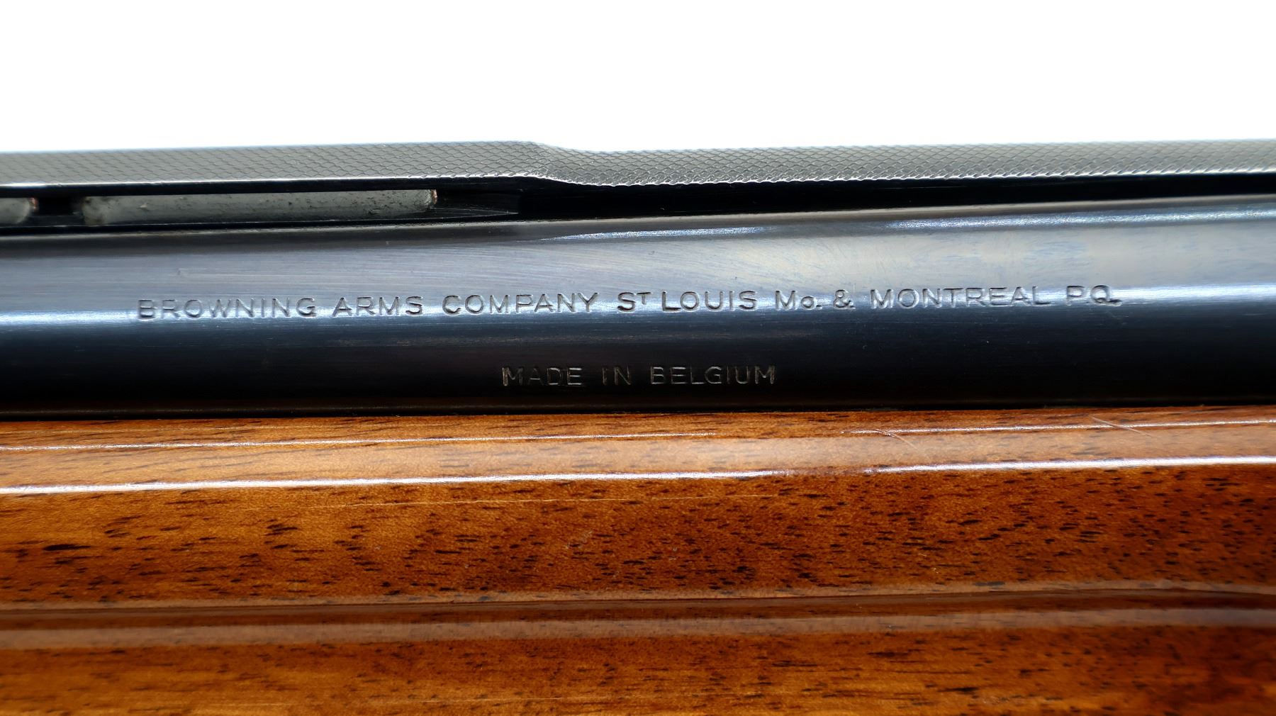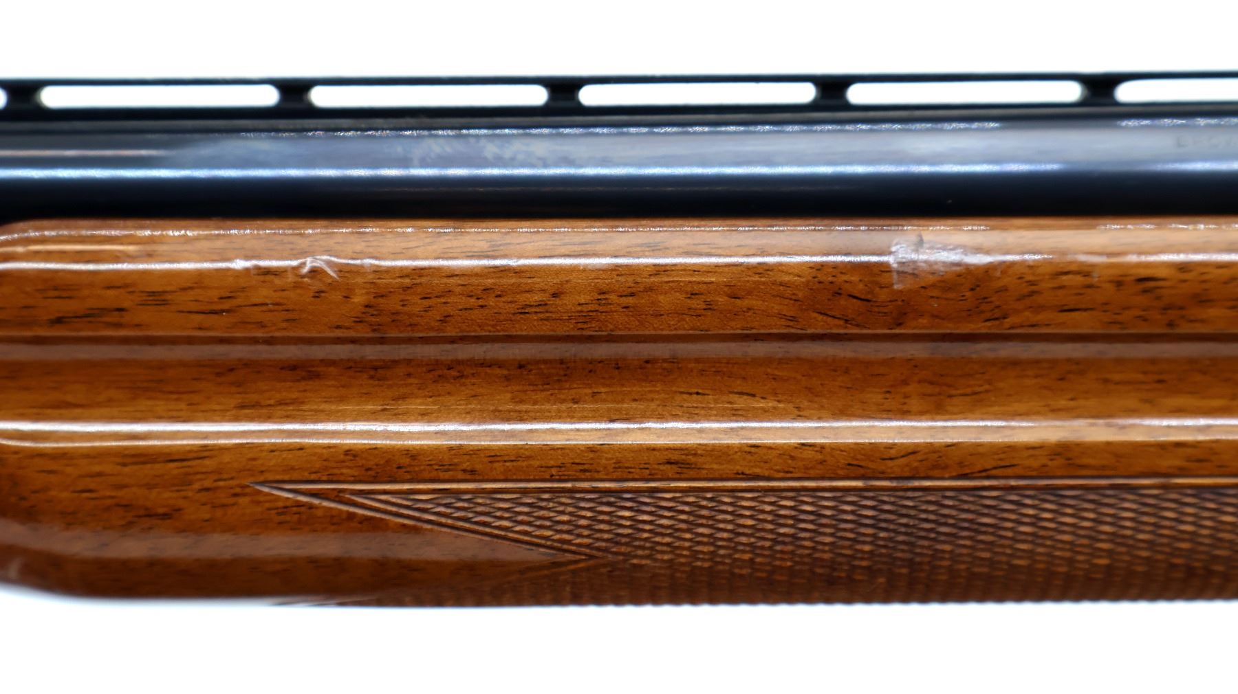 Main Description: Silver bead, polish blued finish, vent rib, engraved receiver. Two piece wood stocks, finger grooved checkered forearm and pistol grip, Browning logo black polymer butt plate.