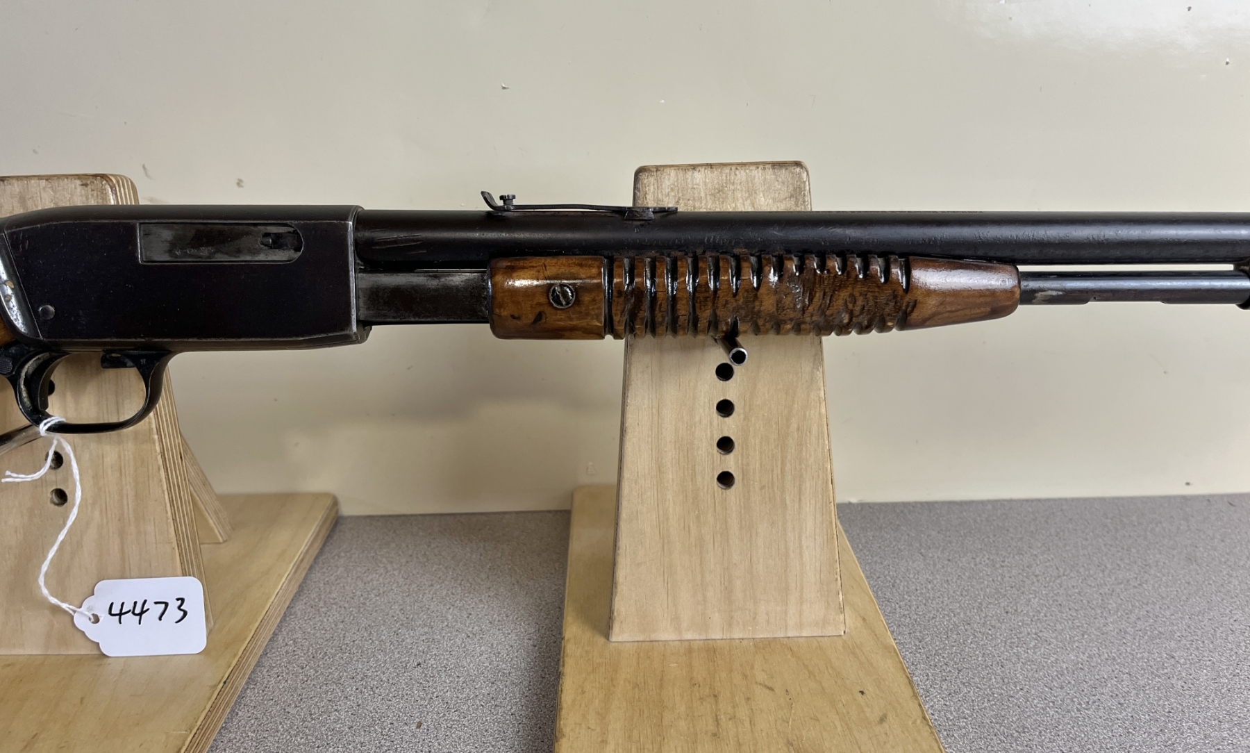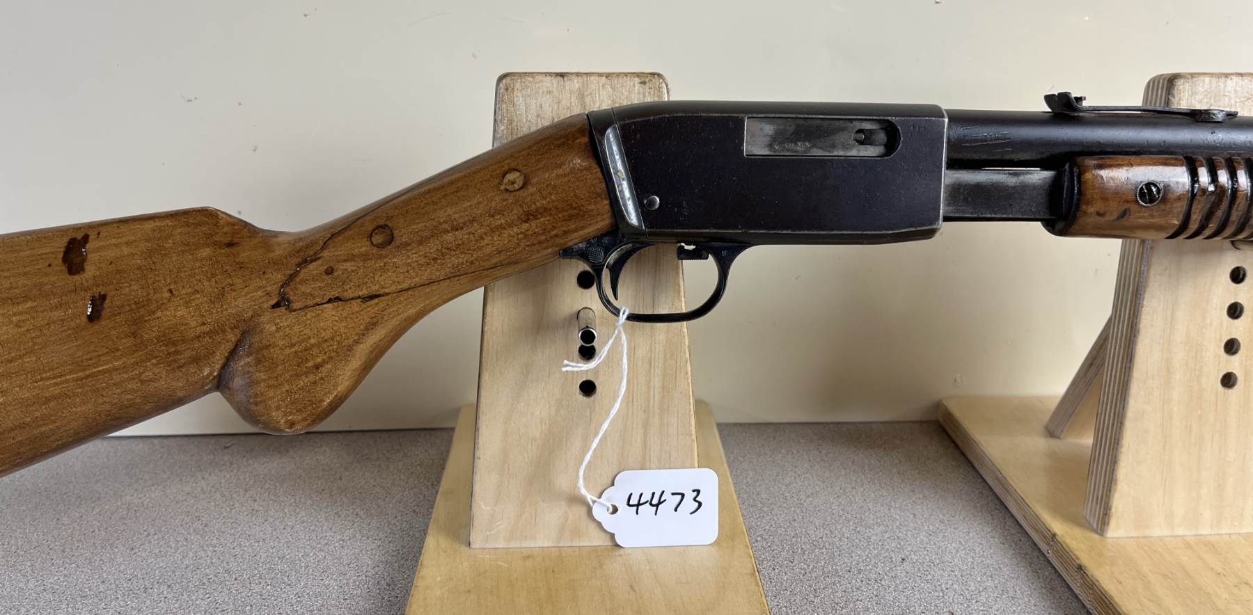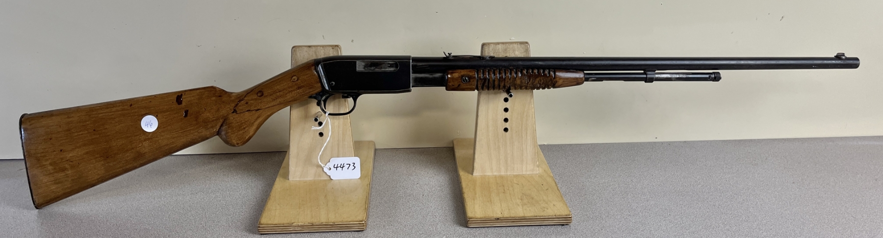 CONDITION: F-G OVERALL, BORE P-F. NOTE: STOCK SHOWS REPAIRED MAJOR CRACKS AT WRIST, FOREND SHOWS MAJOR CHIP OUT OF RIGHT SIDE, RECEIVER SHOWS MINOR EXTERIOR RUST. SPECS: 22IN BBL WITH IRON SIGHTS. EXTRAS: NONE. S/N: 8412