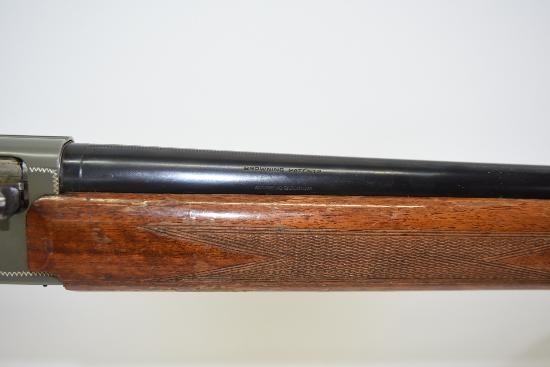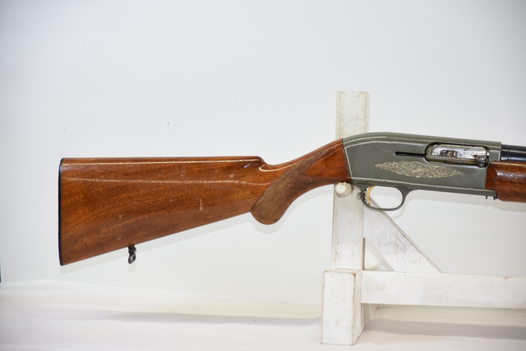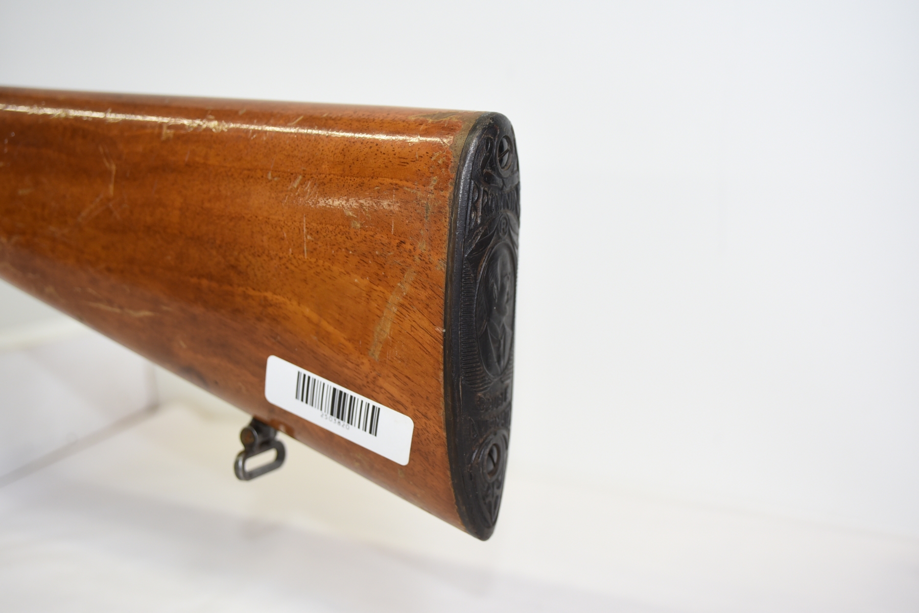Wood stock shows scratches, scuffs, finish wear, light dents; condition is fair.