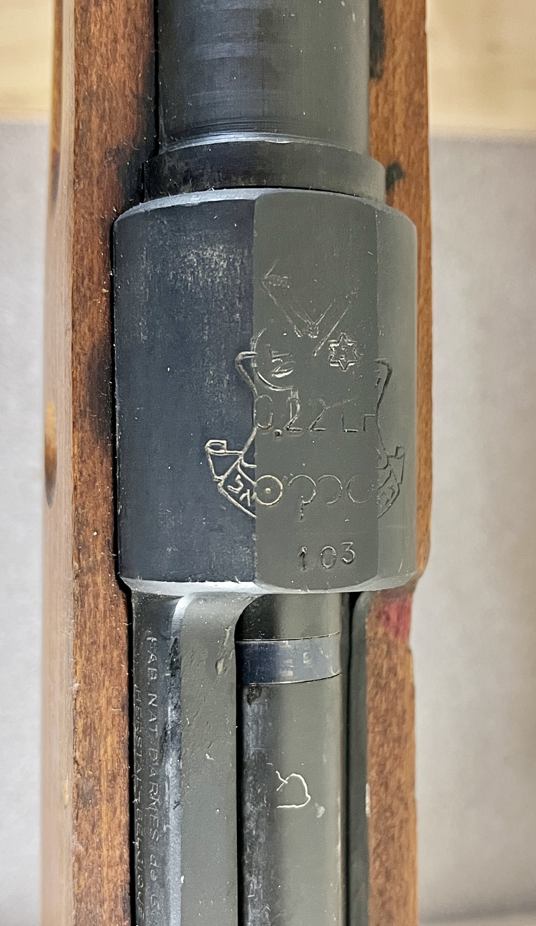 CONDITION: G OVERALL, BORE VG. SPECS: 24IN HEAVY BBL WITH IRON SIGHTS. EXTRAS: NONE. S/N: 103