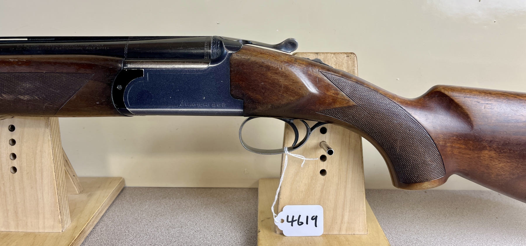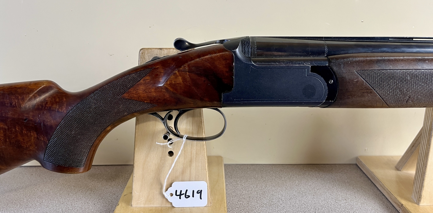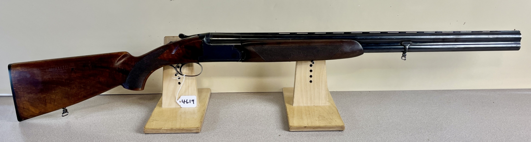 CONDITION: G OVERALL INCL BORES. NOTE: MINOR CRACK NEAR TRIGGER GUARD, ACTION RELEASE RETURN SPRING NOT FUNCTIONING. SPECS: 26-3/4IN O/U VENT RIB BBLS FIXED FULL OVER MOD CHOKES. 2-3/4IN CHAMBER. EXTRAS: NONE. S/N: 4111329