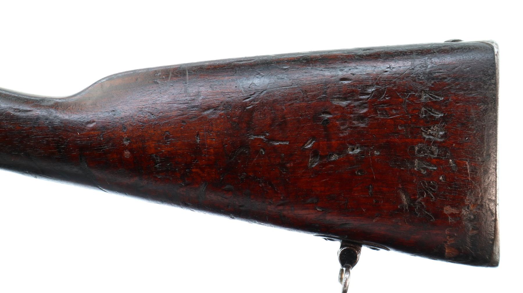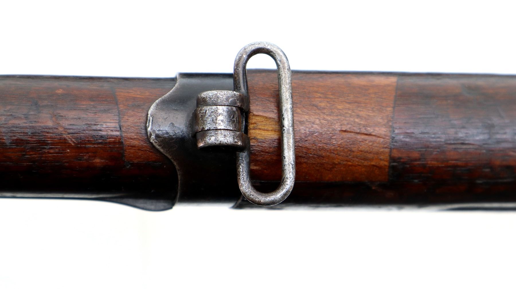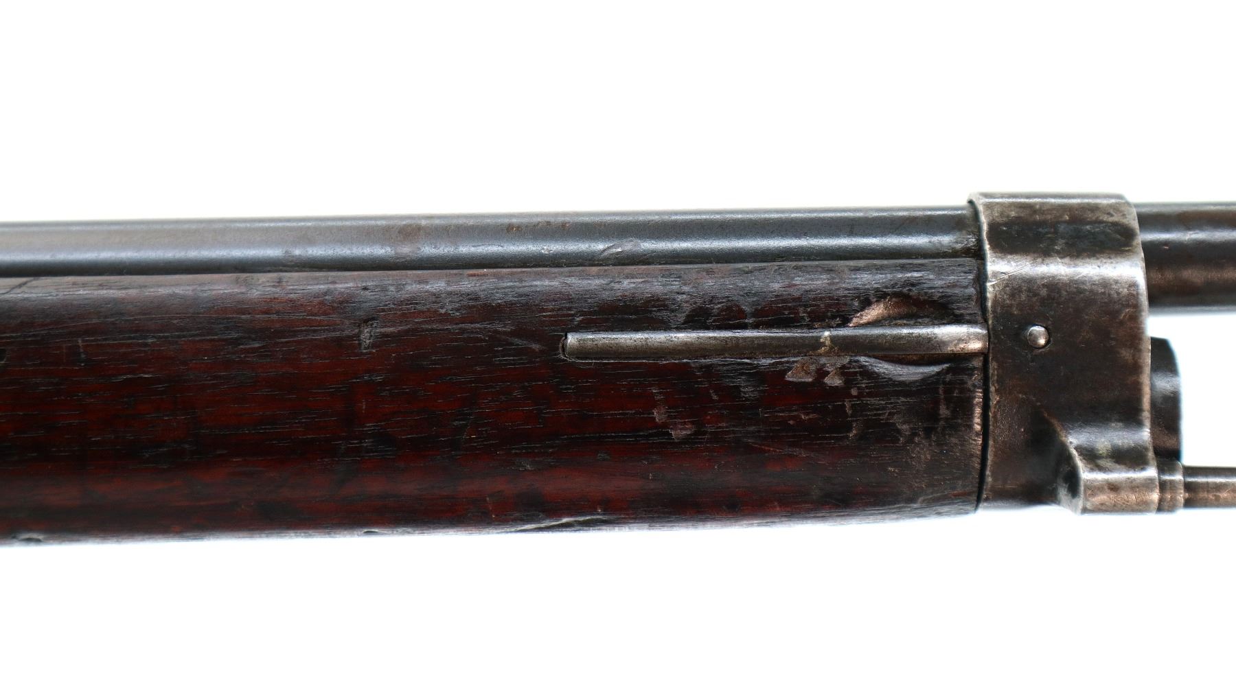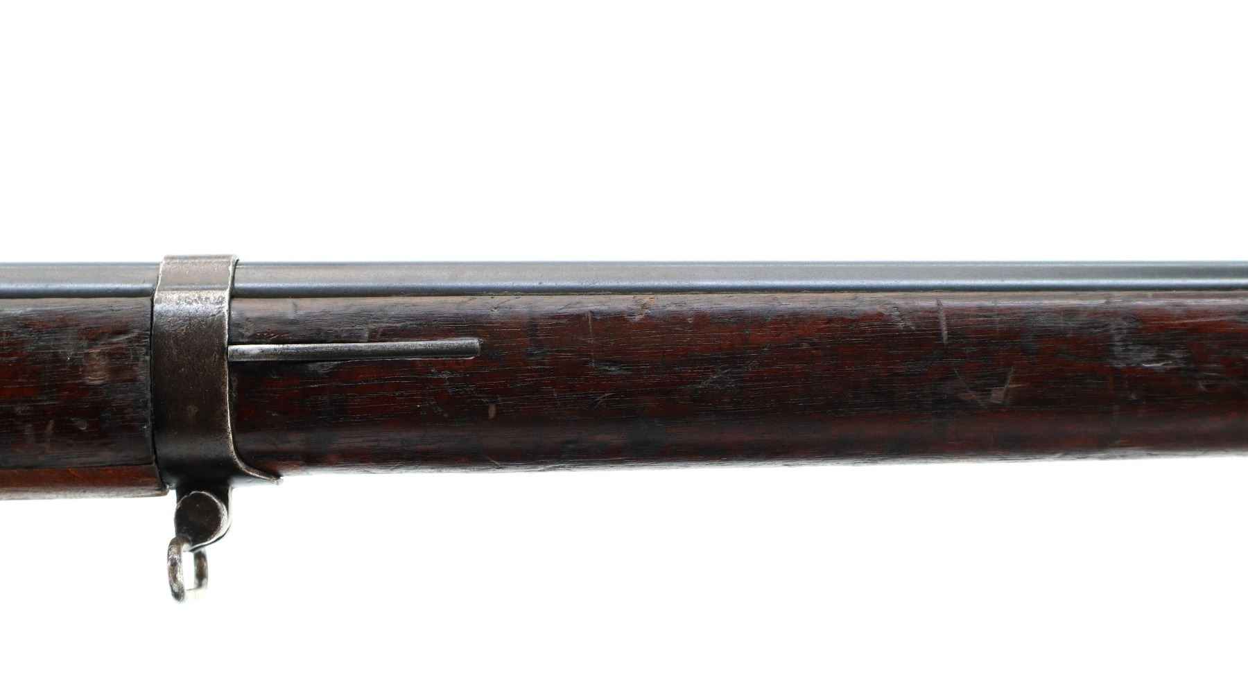 Main Description: Manufactured by St Etienne 1920, visible serial numbers match. Block front sight with groove, adjustable u notched rear sight, blued finish, straight bolt handle with large knob. Two piece full military wood stocks, finger grooved forearm cracked in front of receiver, arsenal repair around middle band. Straight grip, smooth steel butt plate, sling swivels, stacking hook, bayonet lug