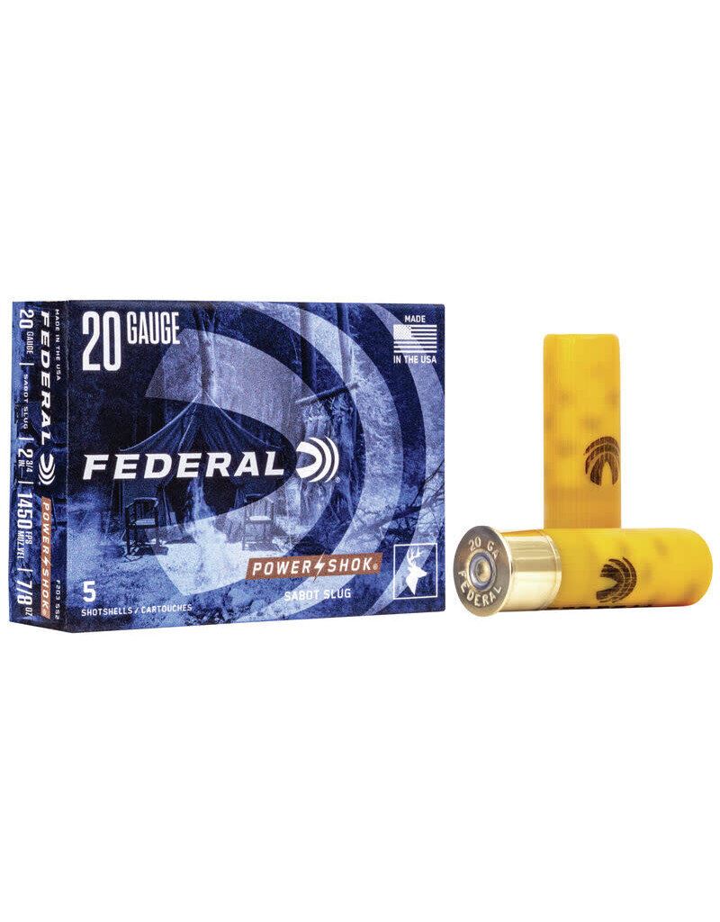 Federal Power-Shok 20GA 2 3/4" 7/8 oz Sabot Slug (5 Rounds) Sku F203SS2This Lot is for One Brand new, sealed Unit. UPC : 29465027384