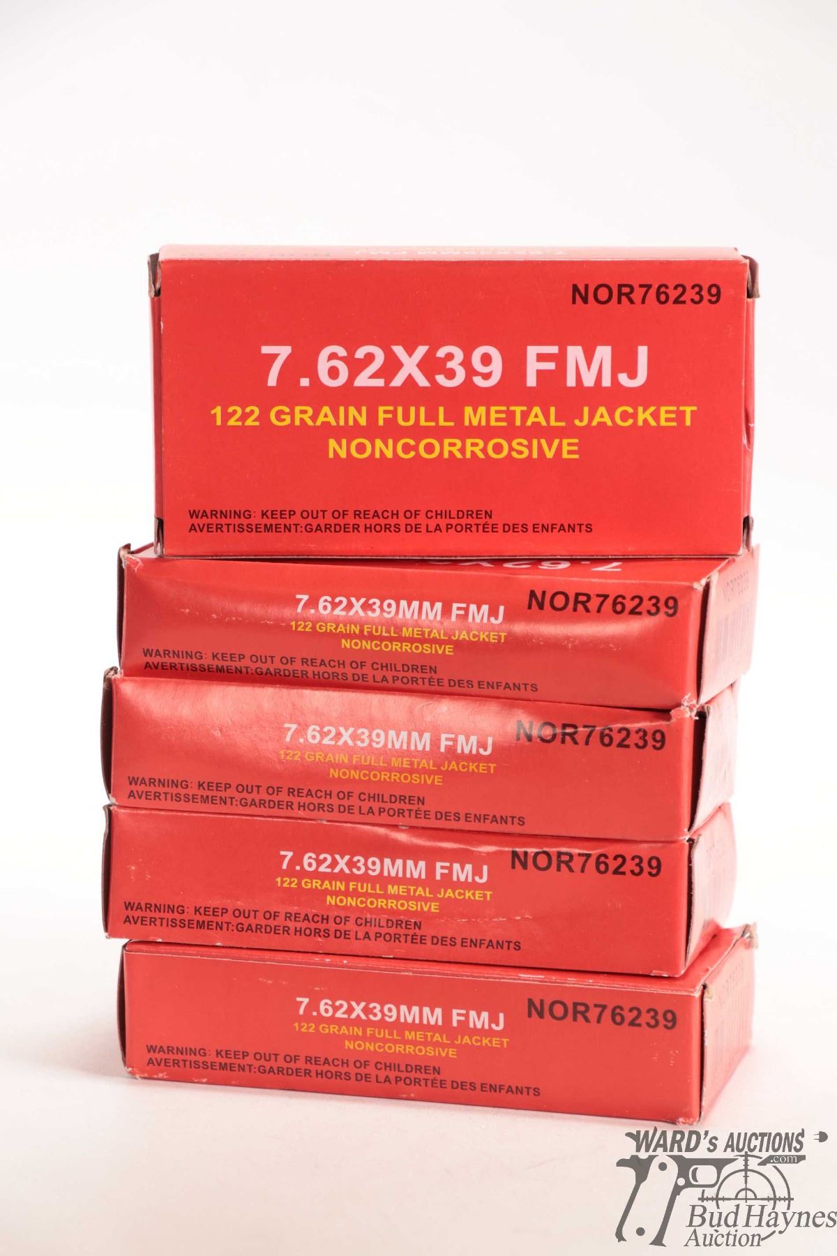 Five full 20 count boxes of NOR76239 7.62X39, 11 grain, full metal jacket non-corrosive