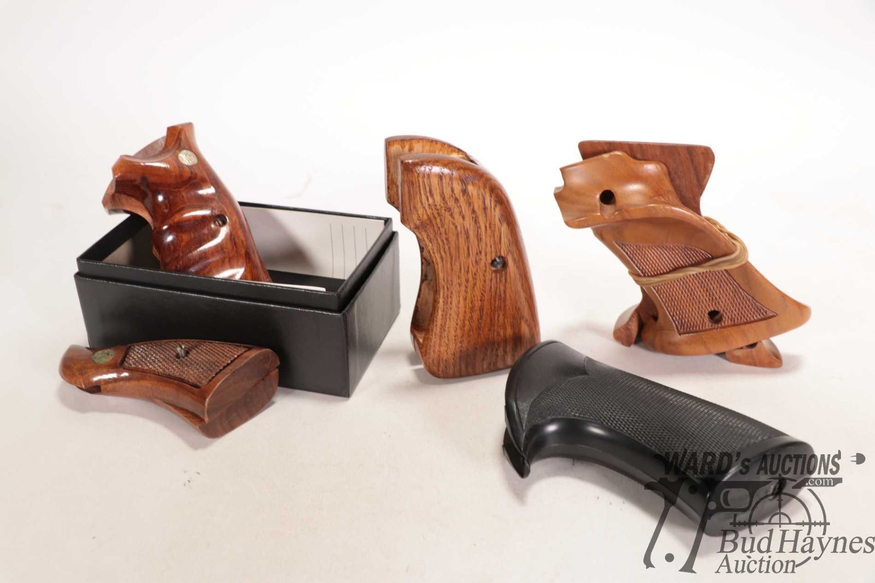 Five sets of assorted handgun grips including Smith and Wesson