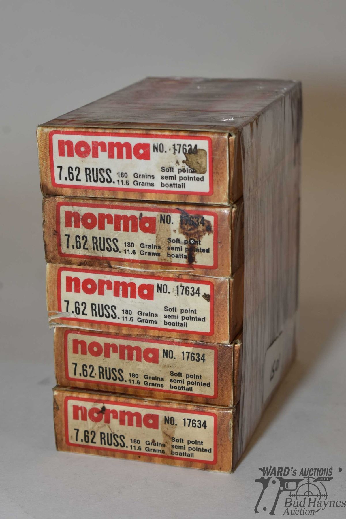 Four full 20 count boxes and one 15 count box of 7.62 Russ reloads