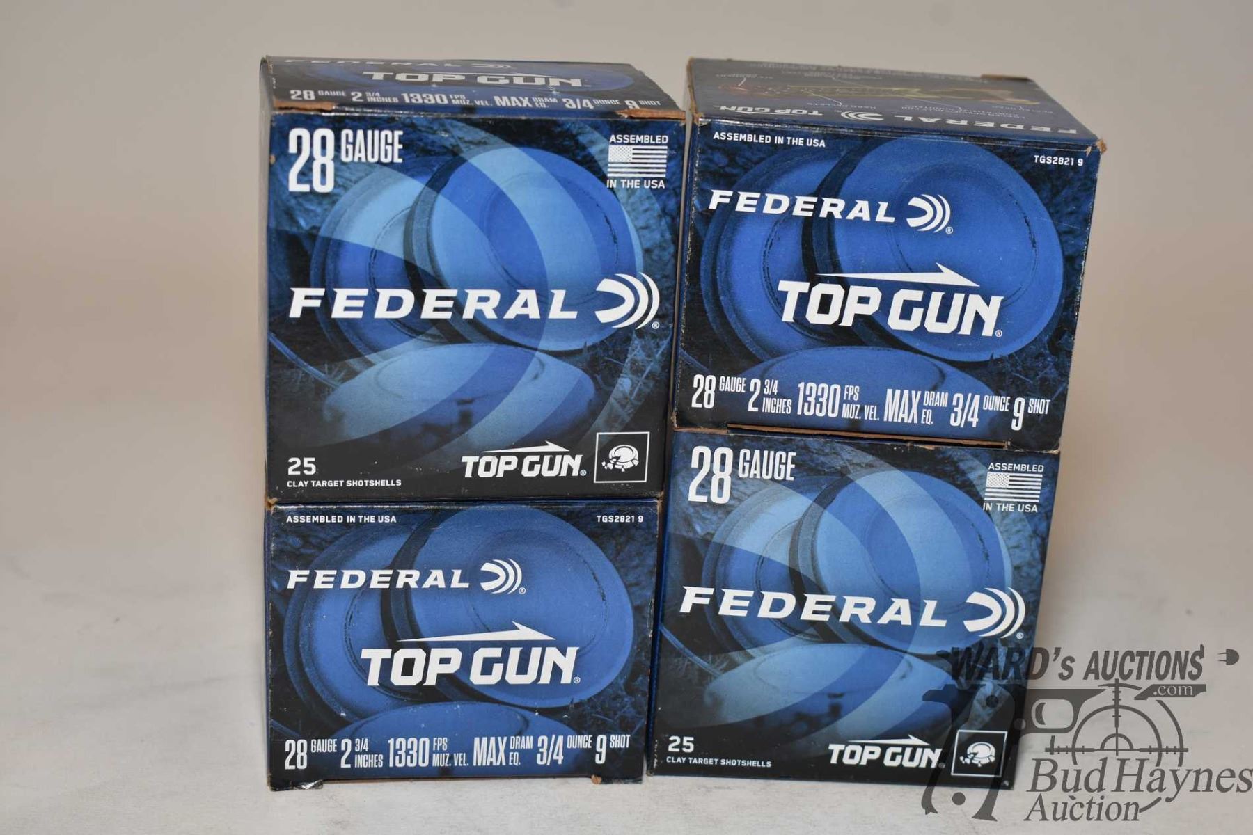 Four full 25 count boxes of Federal Top Gun 28 GA 2 3/4" #9