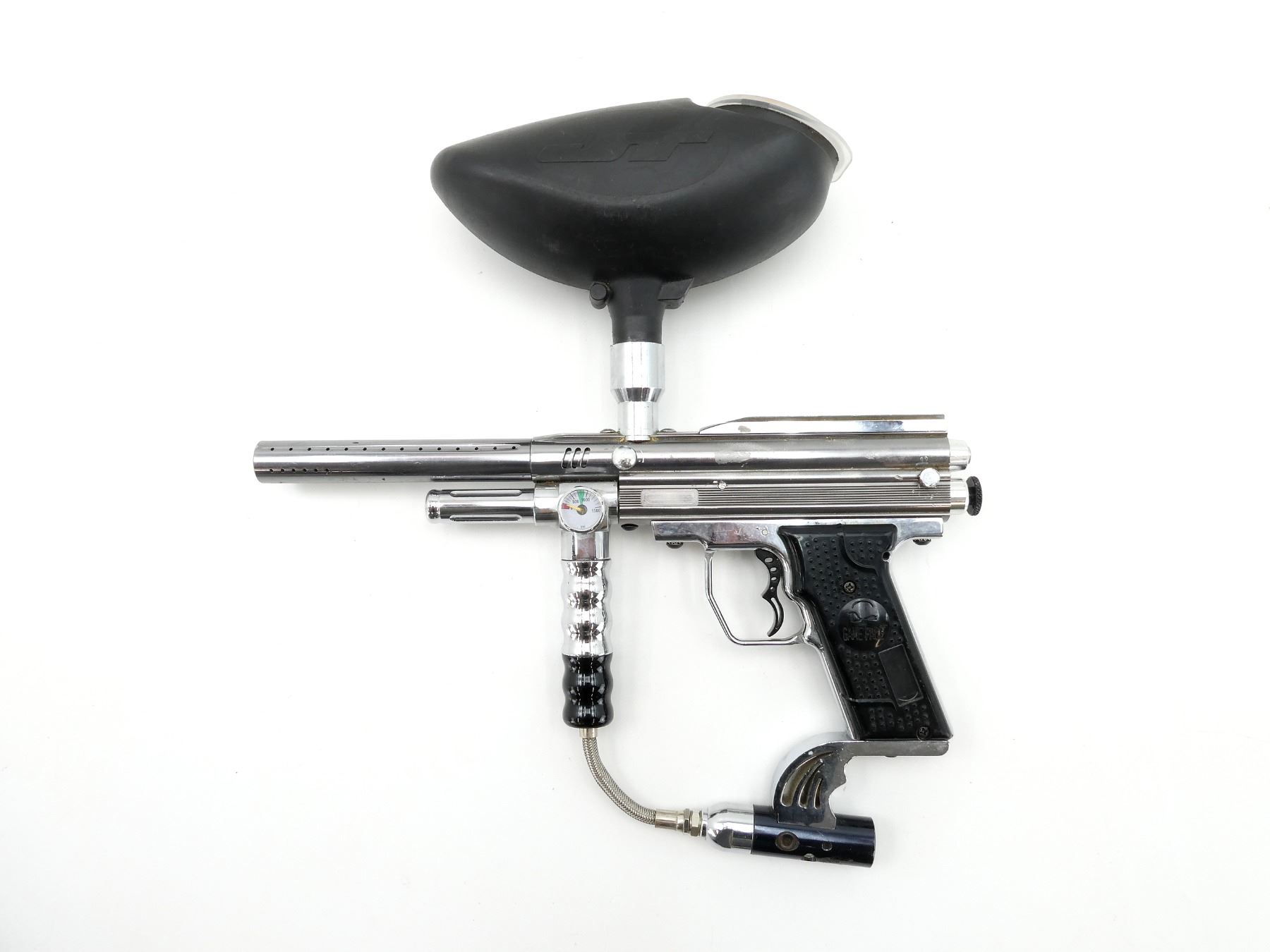 GAME FACE E REX PRO PAINTBALL GUN WITH ATTACHED HOPPER AND PAINTBALLS LOT