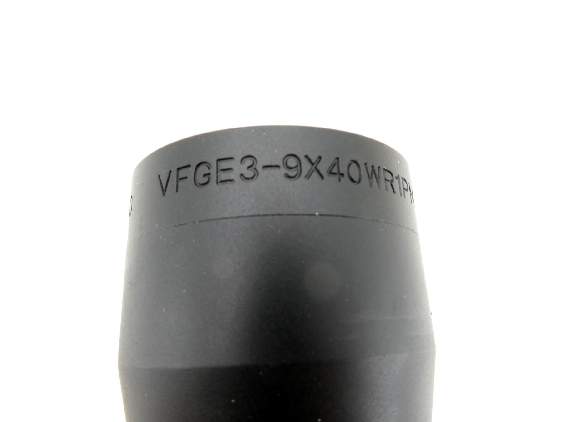 (1) CLEAR OPTICS, DUPLEX RETICLE, 1" TUBE DIAMETER, WORKING MAGNIFICATION RING, WINDAGE & ELEVATION KNOBS TURN, MARKED "VFGE3-9X40WR1PM", ETC., WITH ATTACHED MOUNT, LENS COVERS & INSTRUCTIONS IN ORIGINAL PACKAGING, SHOWS WEAR & TEAR / USE MARKINGS. MAY REQUIRE FITTING. SEE PHOTOS.