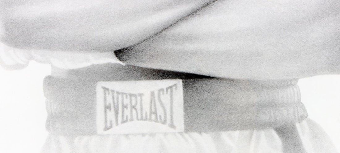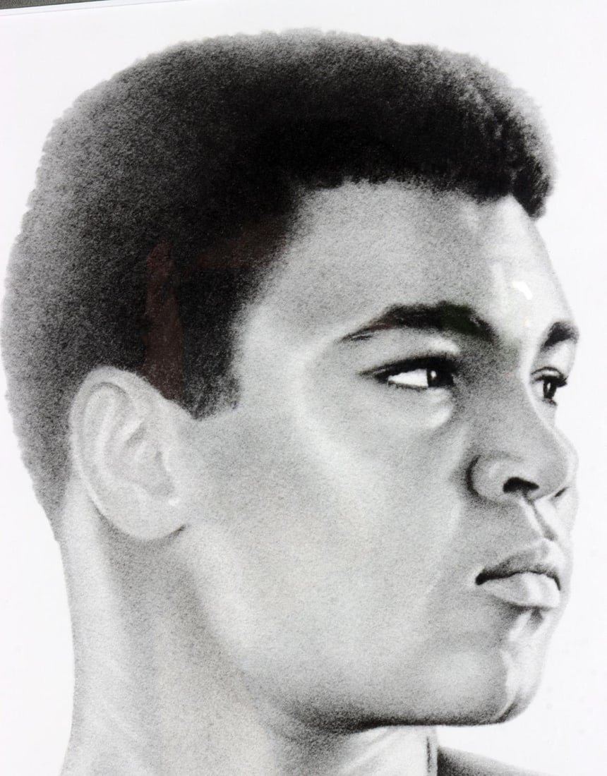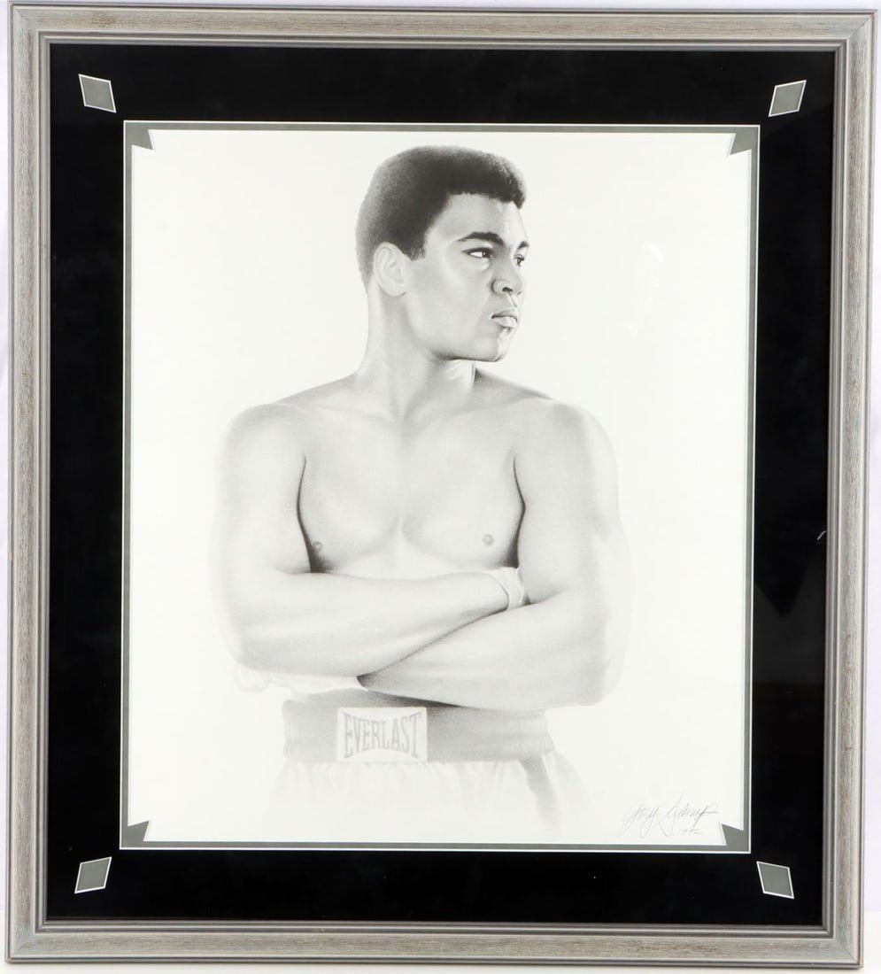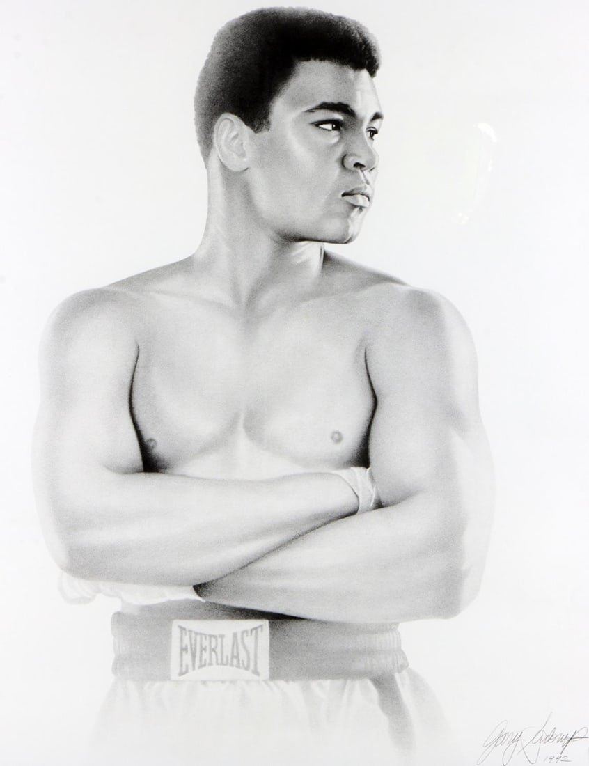 Framed 32 x 27, signed by Gary Saderup and dated 1992 lower right, after 1963 Cassius Clay image.