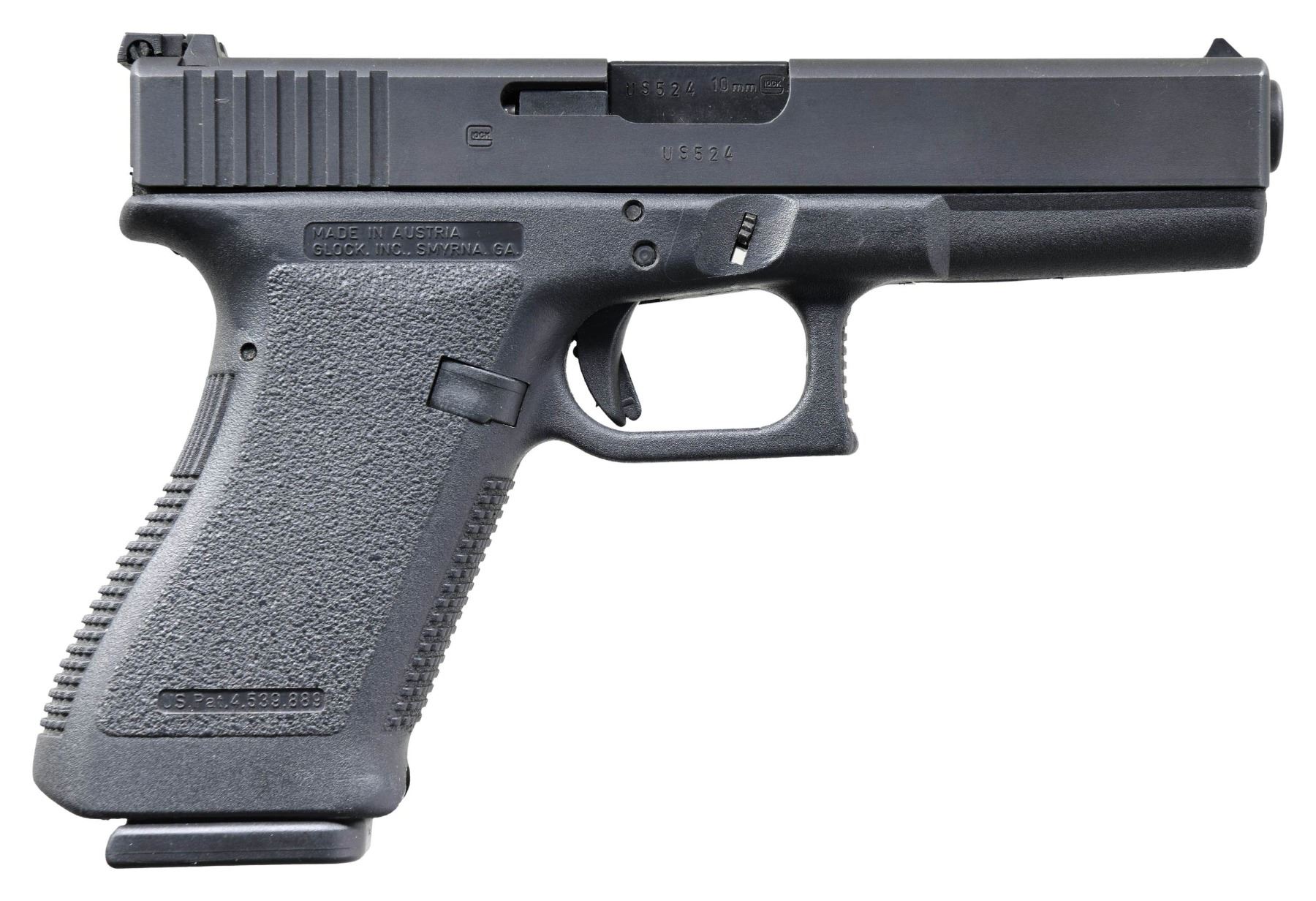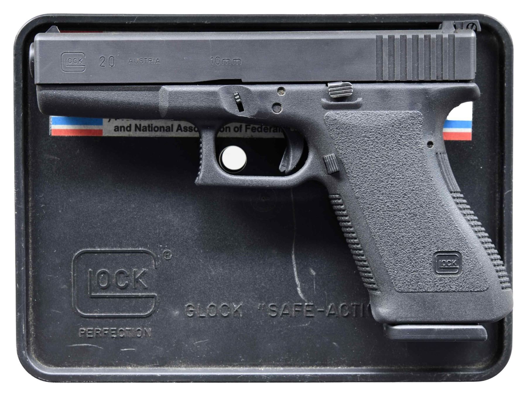 "TUBBERWARE" CASE. Cal. 10mm. S# US524US. Standard configuration with 4.61" bbl. & adj. rear sight. MAGS: 1 - 15 rd. UNATTACHED ACCESSORIES: matching "tubberware" case containing mag. loader & cleaning kit. CONDITION: very good to near excellent appearance with light wear & handling marks. (25-3226/MD). MODERN. $350-500.