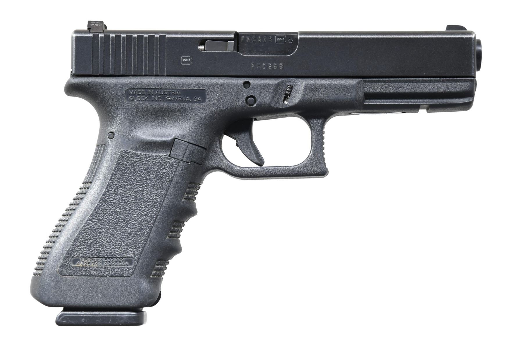 Cal. 40 S&W. S# FHC968. Standard configuration with 4.48" bbl. & 3 dot night sights. CONDITION: near excellent finish with light edge wear on barrel breech edges. Shiny bore. Sights need to be replaced, tritium is faint. (25-3222/MD). MODERN. $350-500.