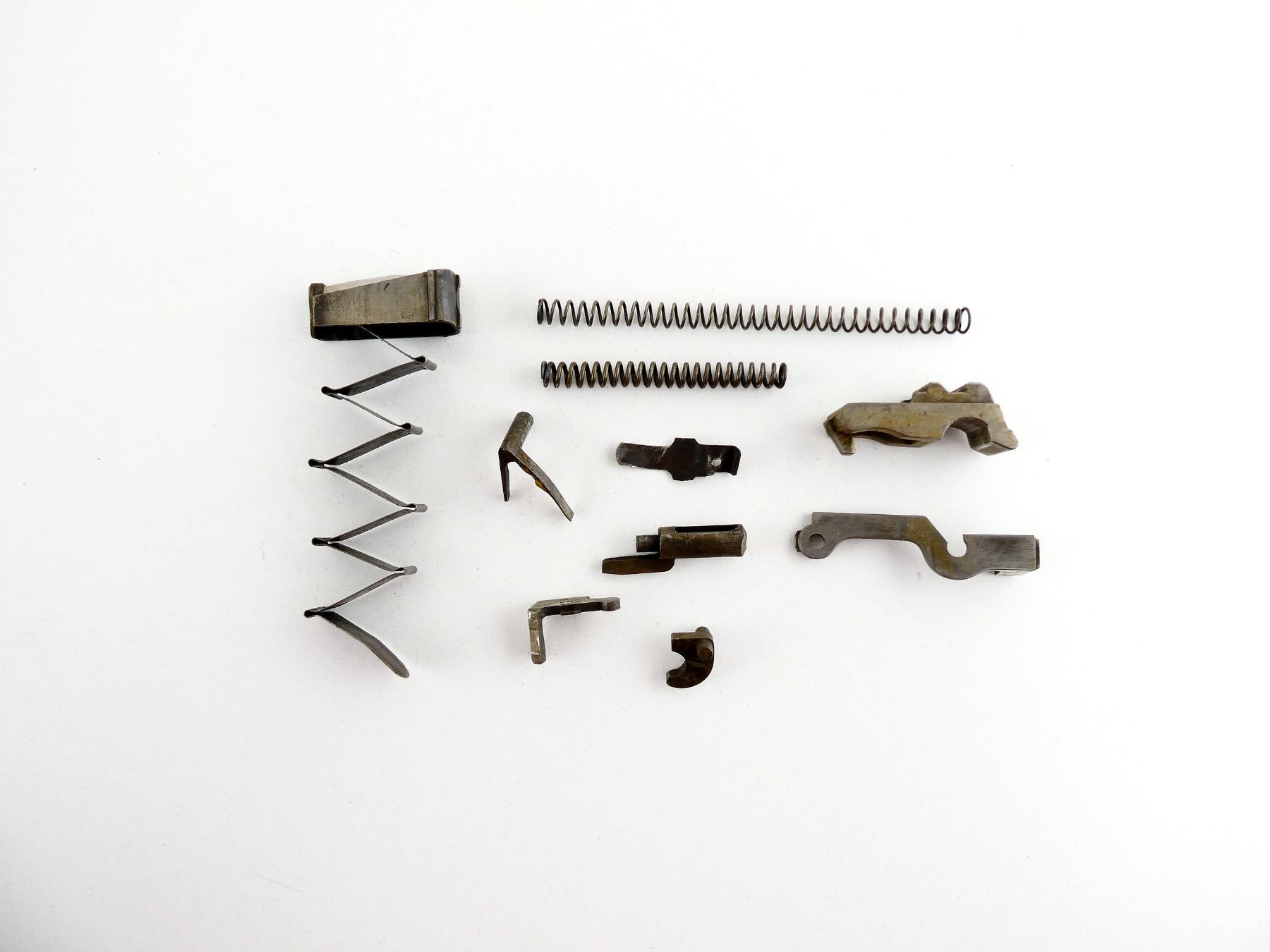 VARIOUS MARKINGS, LOT INCLUDES; LOCKING BLOCK, SEAR WITH SPRING, RETURN SPRING, MAG FOLLOWER WITH SPRING, VARIOUS OTHER TRIGGER PARTS, ETC. MAY REQUIRE FITTING. SEE PHOTOS.