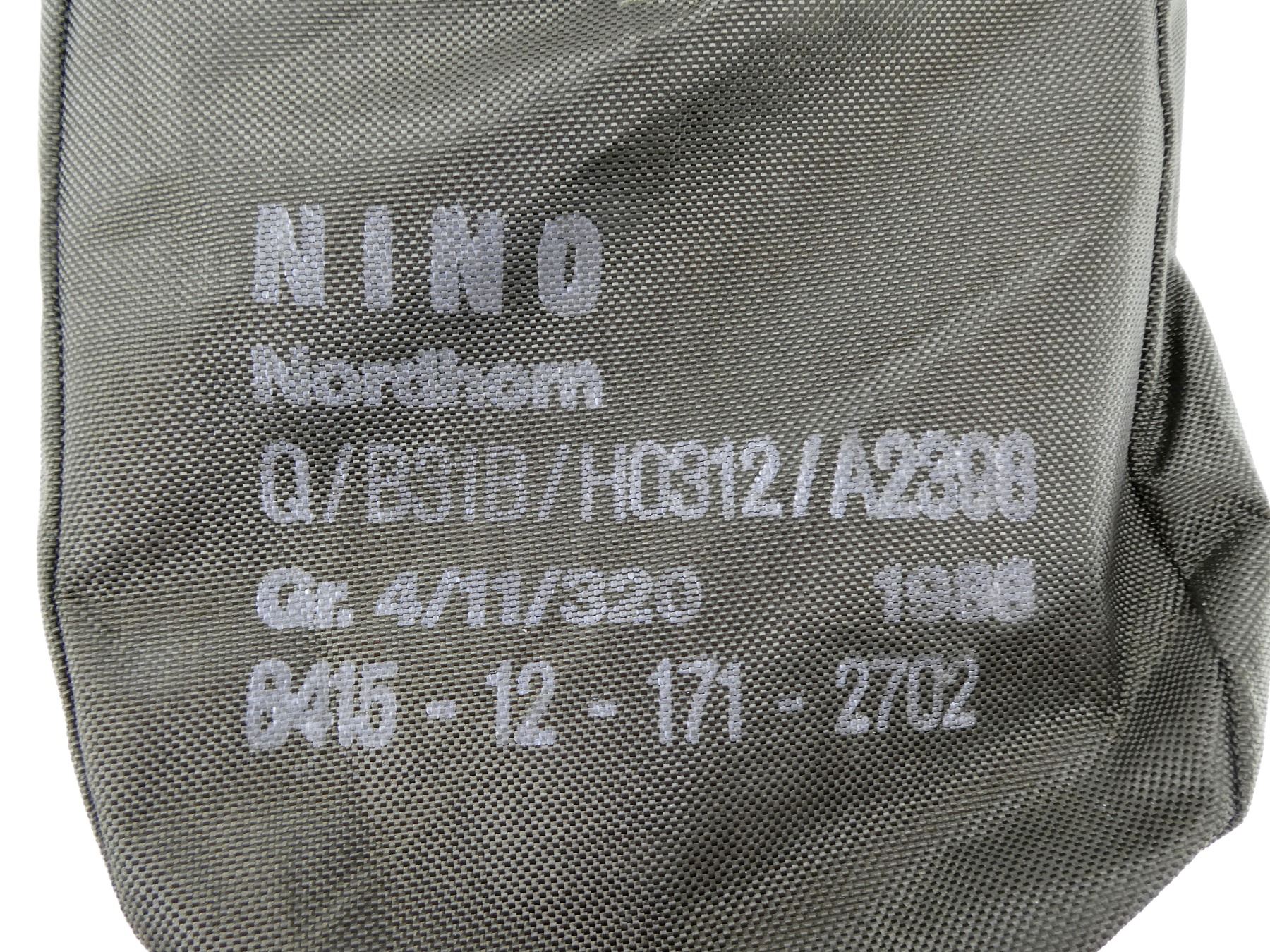(1) GREEN NYLON, APPEARS NEW OLD STOCK, IN CARRIER BAG, BAG MARKED: "NINO, NORDHOM, Q/B31B/H0312/A2398, GR. 4/11/320 1988, 8415-12-171-2702". SEE PHOTOS.