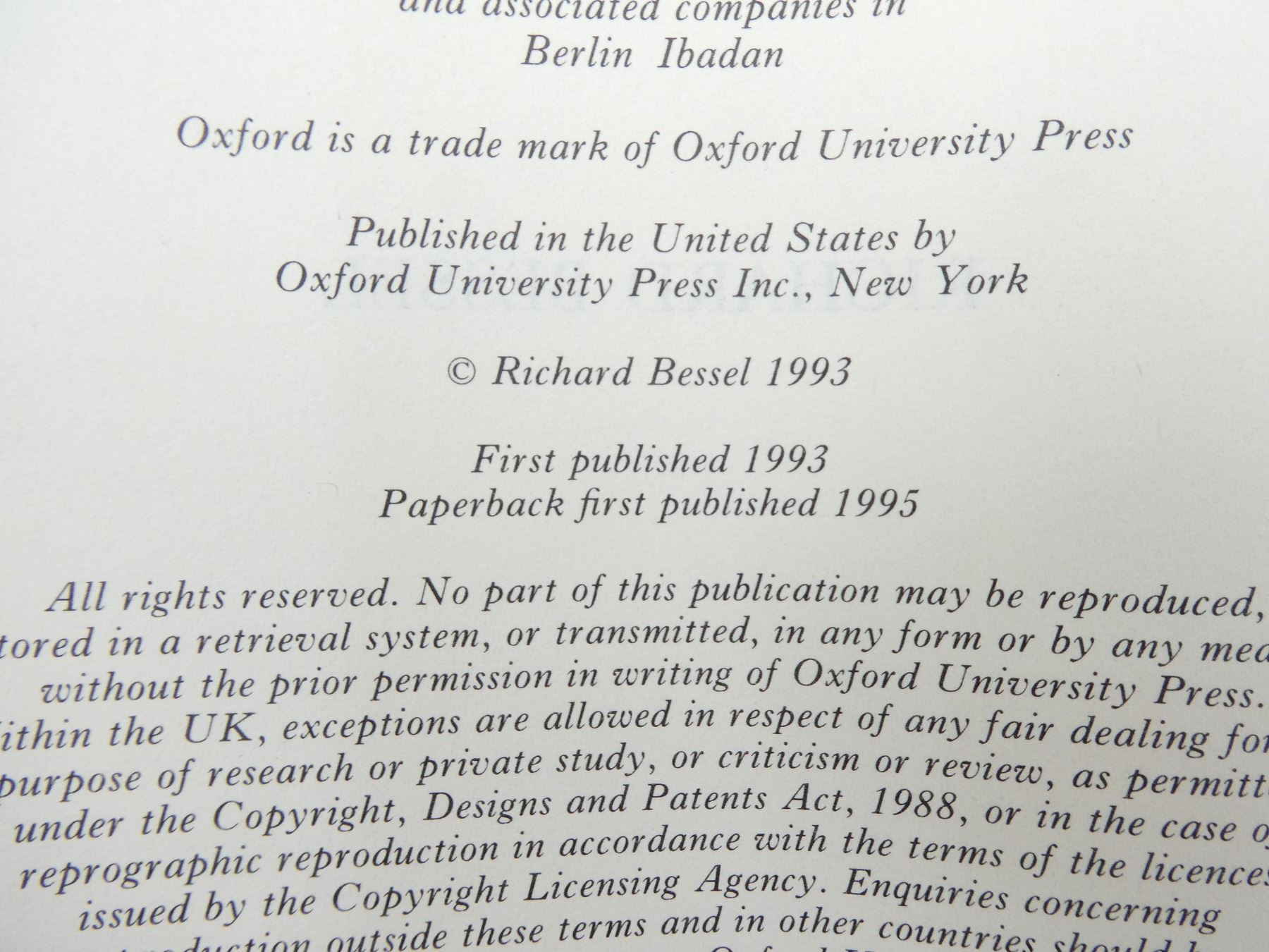 (1) BY RICHARD BESSEL, SOFT COVER, ISBN: 0-19-820586-4. SEE PHOTOS.