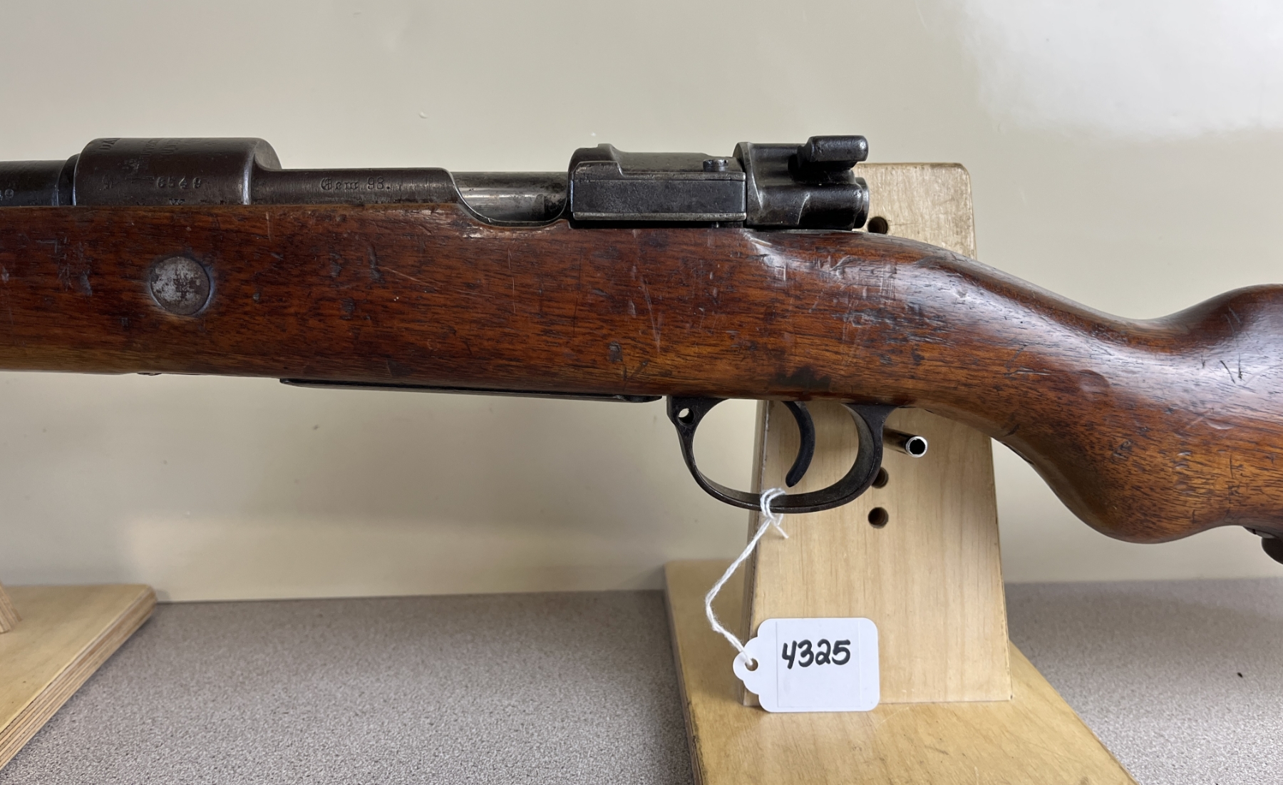 CONDITION: F-G OVERALL INCL BORE. SPECS: 30IN BBL WITH IRON SIGHTS. SHOWS DOUBLE MARKINGS - DANZING 1915, DEUTSCHE WAFFEN - UND1906. EXTRAS: NONE. S/N: 6549