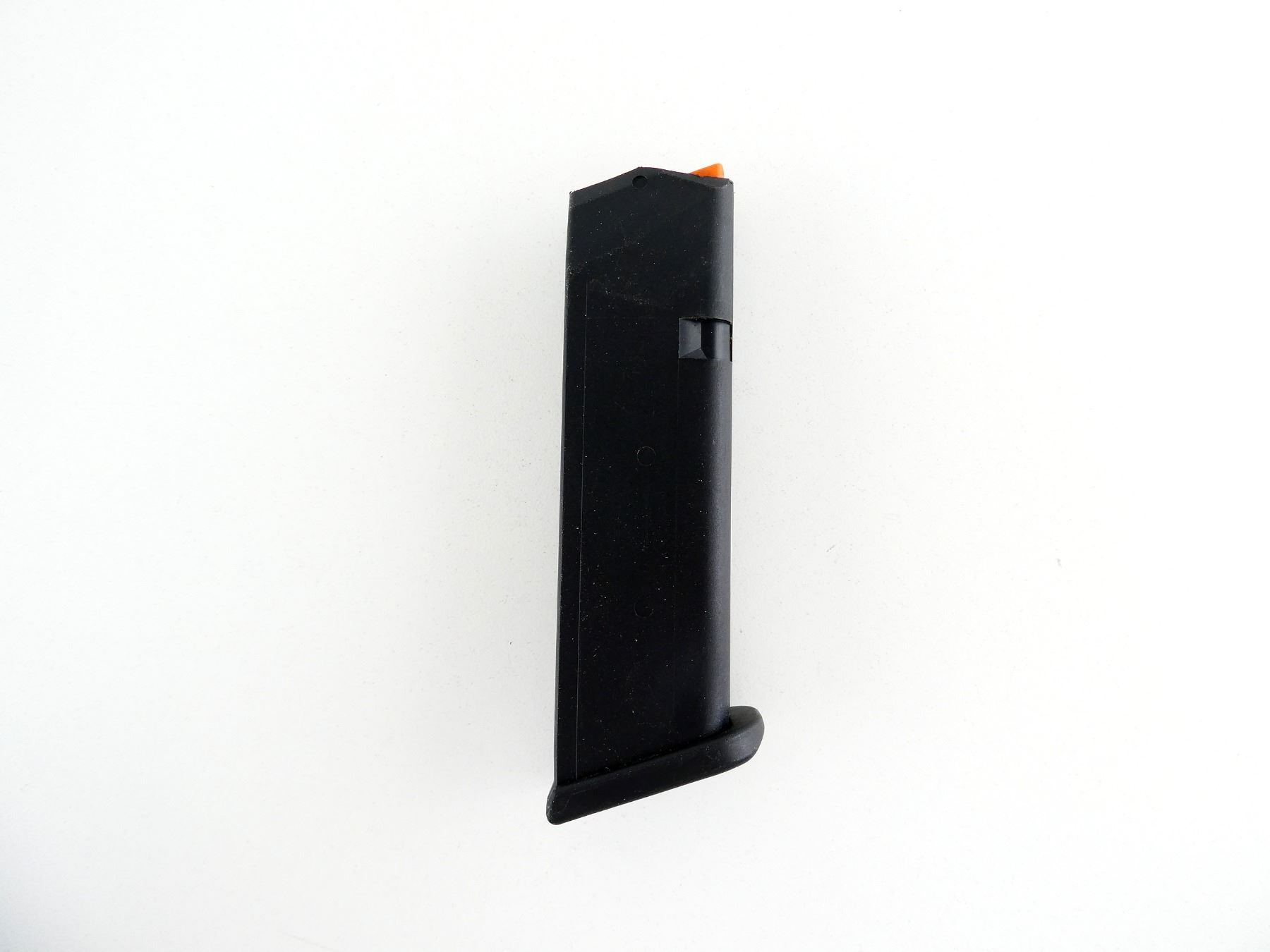 LOT INCLUDES; (2) 9MM LUGER MAGS, 10 RNDS, BLACK POLYMER CONSTRUCTION WITH ORANGE POLYMER FOLLOWER, MARKED: "GLOCK", "9MM", ETC. SEE PHOTOS. PAL REQUIRED.