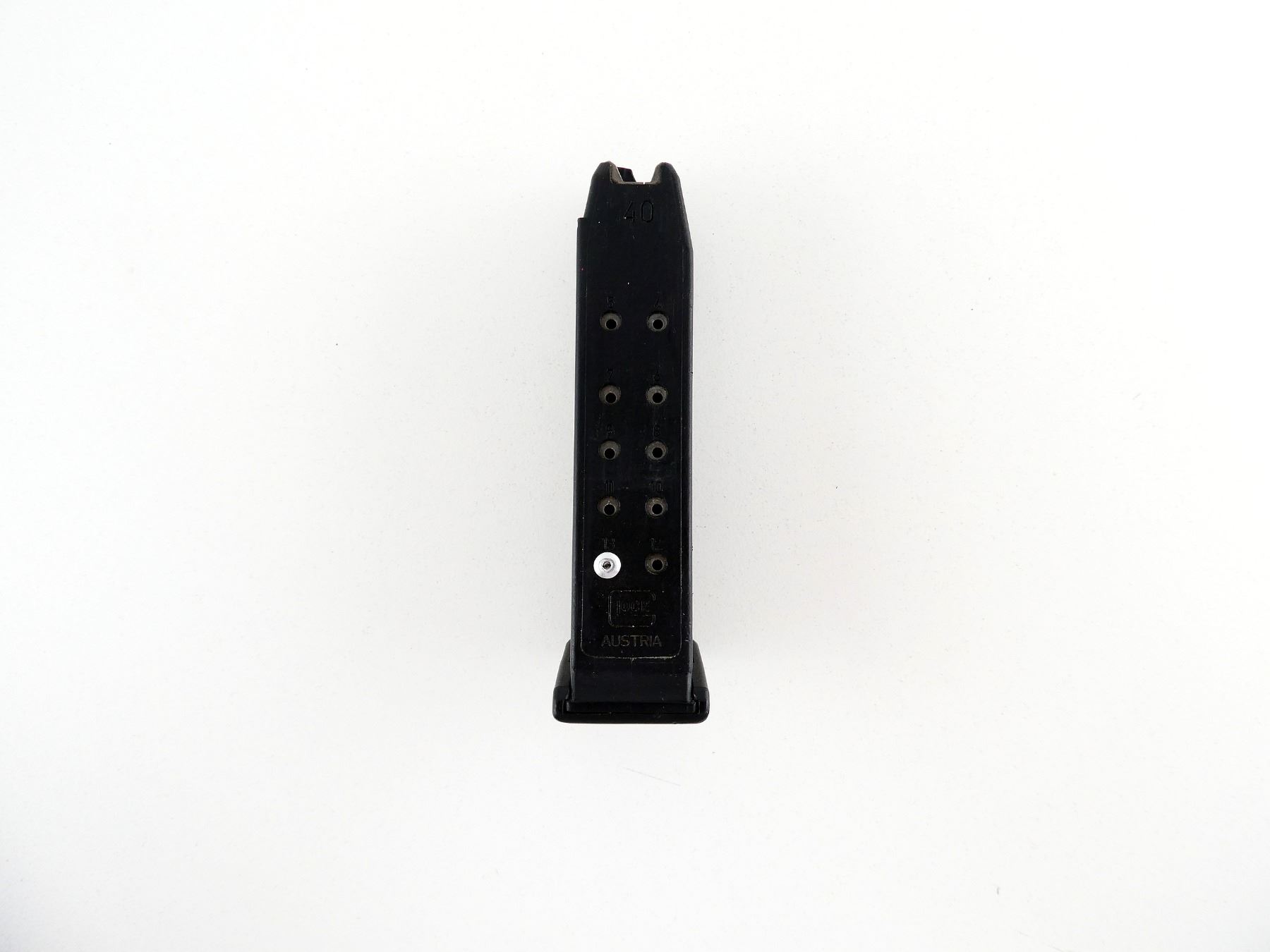 (1) .40 S&W, 9/13 ROUND PINNED MAG, BLACK POLYMER CONSTRUCTION, MARKED: ".40", "GLOCK", ETC. SEE PHOTOS. PAL REQUIRED.