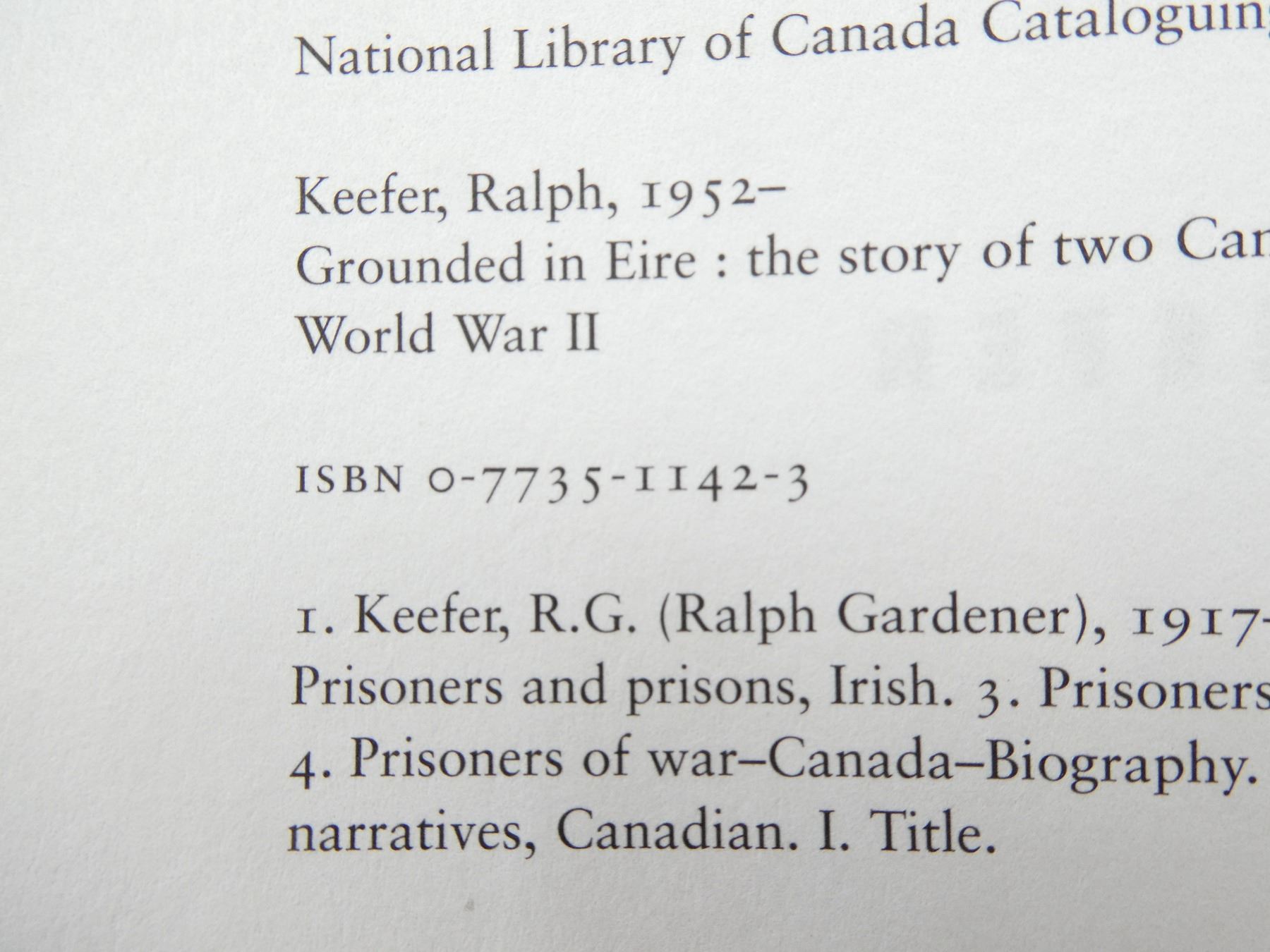 (1) "THE STORY OF TWO RAF (CANADIAN) FLIERS INTERNED IN IRELAND DURING WORLD WAR II" BOOK BY RALPH KEEFER, HARD COVER WITH DUST COVER, ISBN: 0-7735-1142-3. SEE PHOTOS.