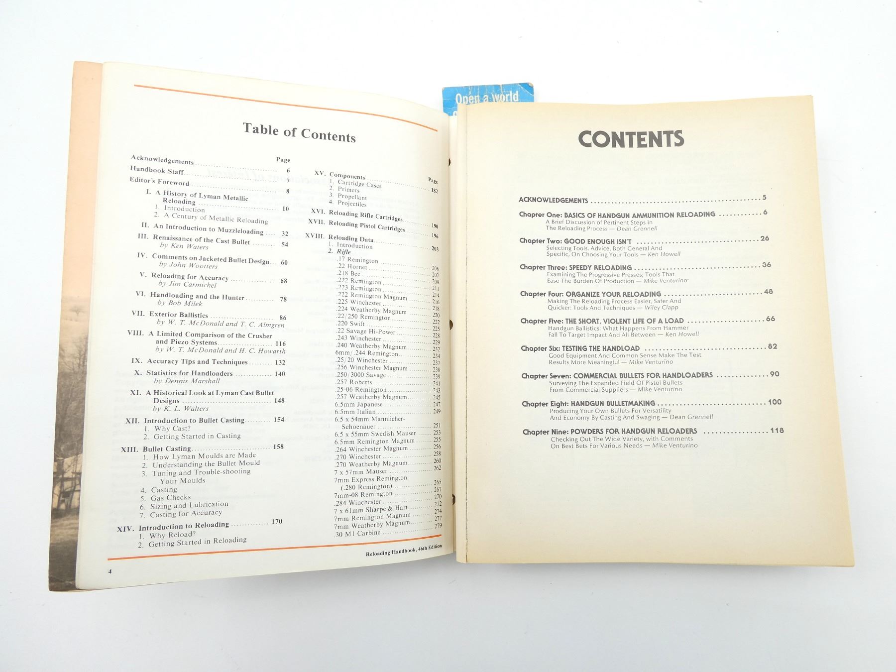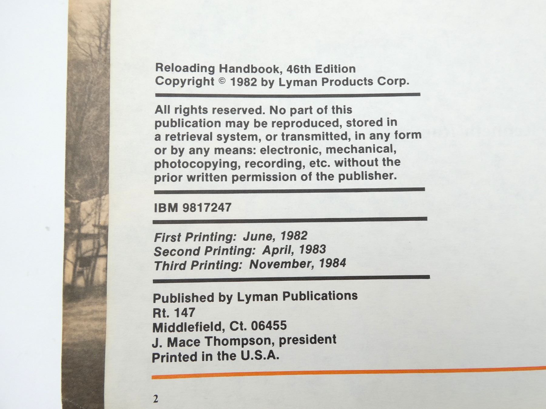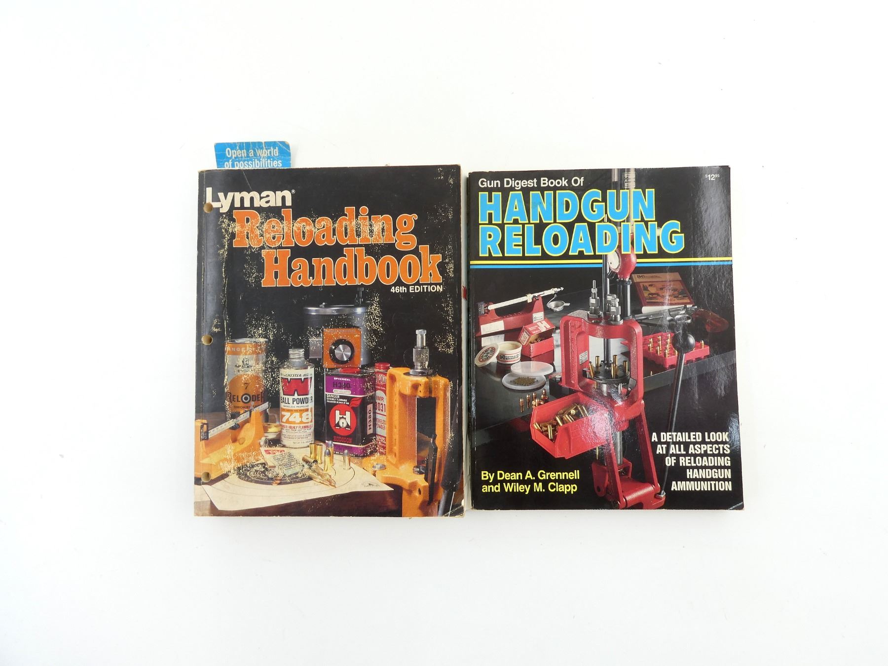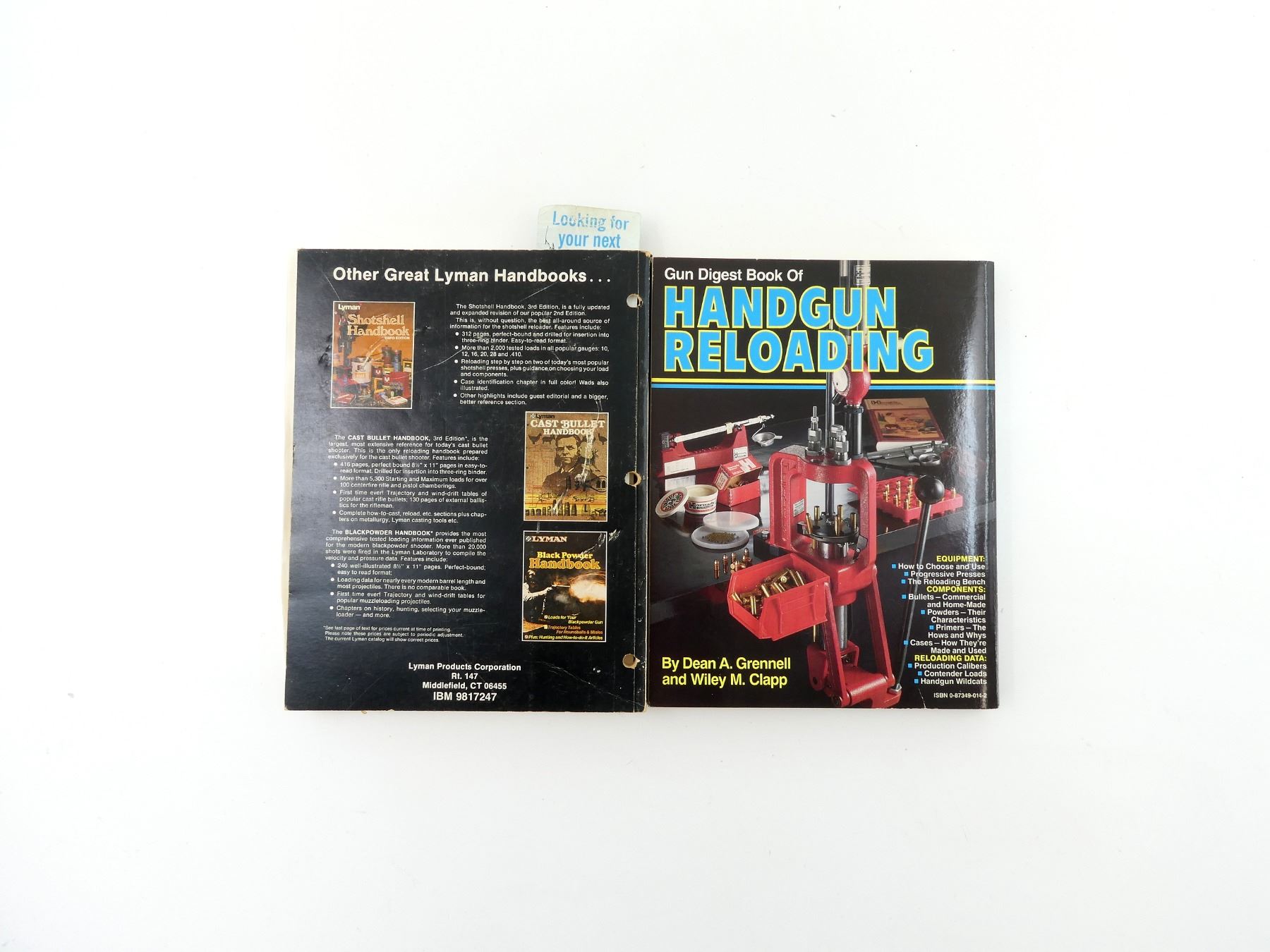 LOT INCLUDES; (1) "GUN DIGEST BOOK OF HANDGUN RELOADING", BY DEAN A GRENNELL & WILEY M. CLAPP, SOFT COVER, ISBN: 0-87349-014-2 & (1) "LYMAN RELOADING HANDBOOK", 46TH EDITION, EDITED BY KENNETH RAMAGE, COPYRIGHT 1982. SEE PHOTOS.