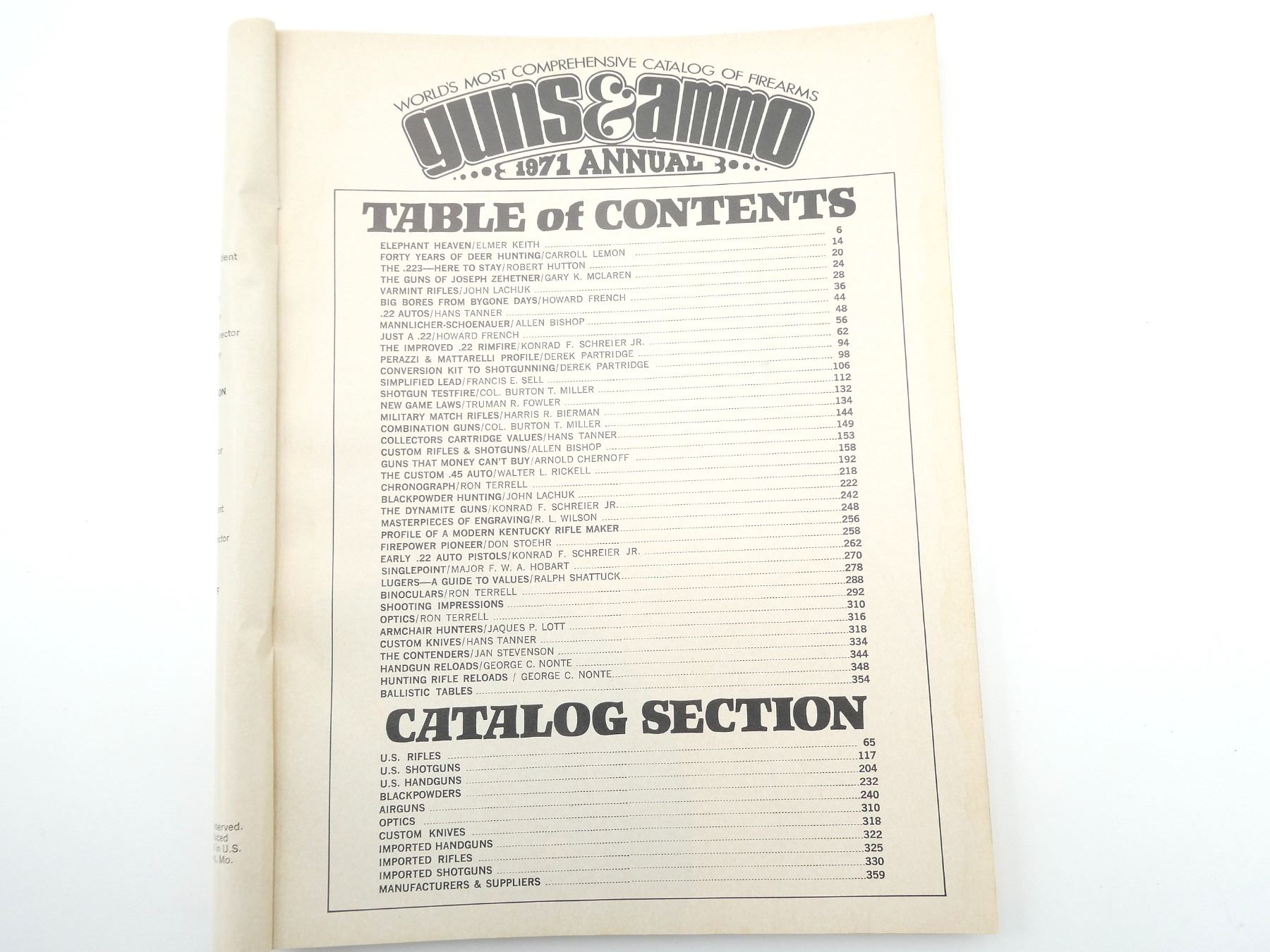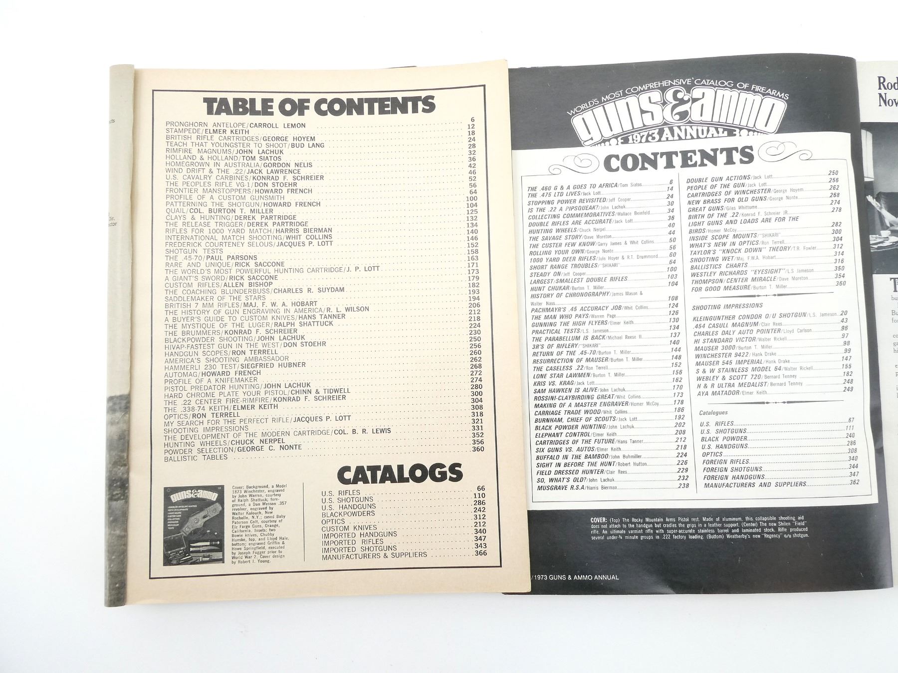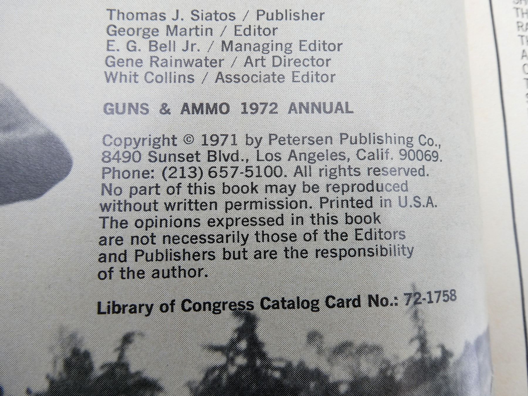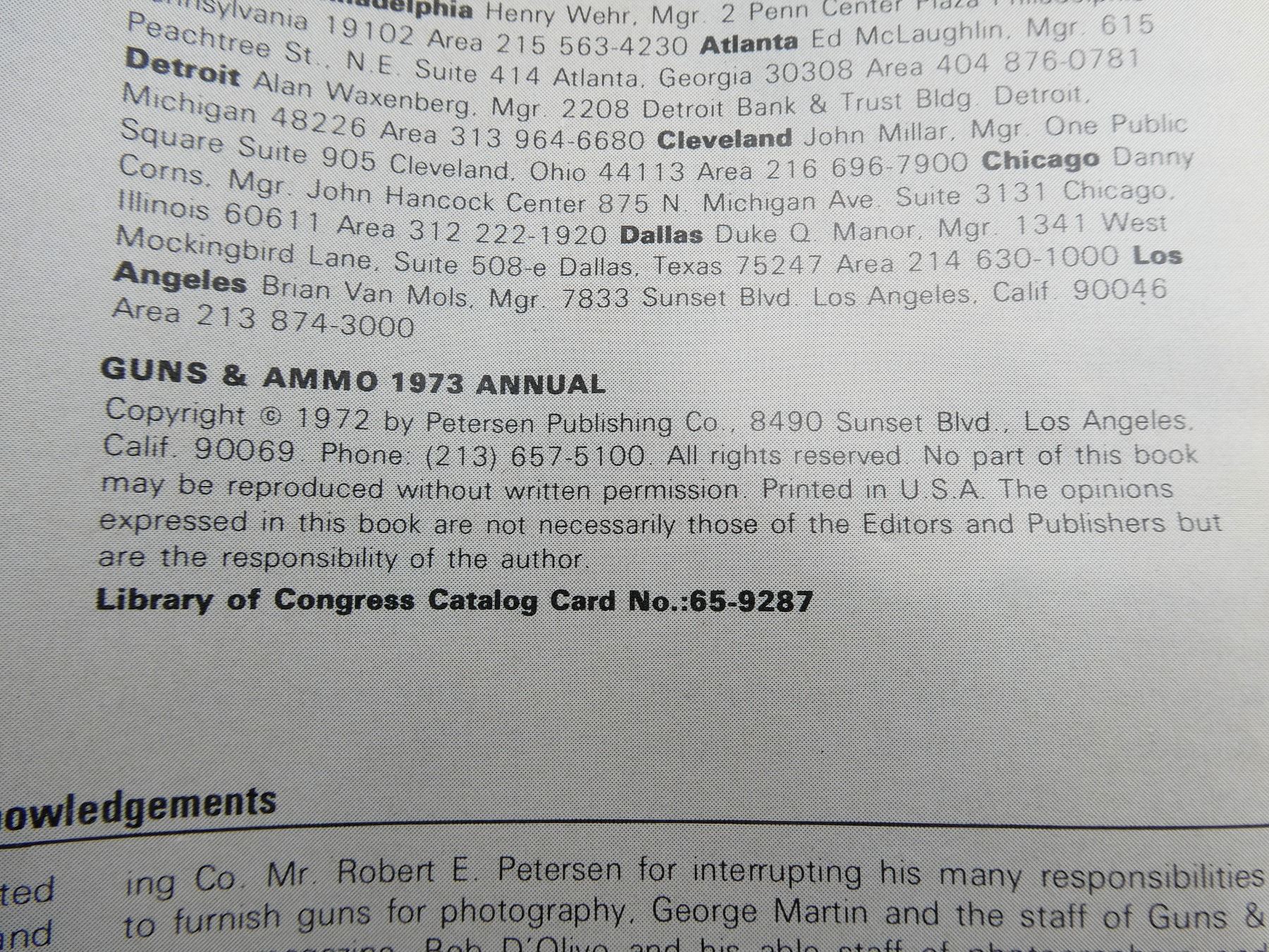 LOT INCLUDES; (1) "GUNS & AMMO 1971 ANNUAL" CATALOGUE, PUBLISHED BY PETERSEN PUBLISHING COMPANY, SOFT COVER, COPYRIGHT 1970, (1) "GUNS & AMMO 1972 ANNUAL" CATALOGUE, PUBLISHED BY PETERSEN PUBLISHING COMPANY, SOFT COVER, COPYRIGHT 1971 & (1) "GUNS & AMMO 1973 ANNUAL" CATALOGUE, PUBLISHED BY PETERSEN PUBLISHING COMPANY, SOFT COVER, COPYRIGHT 1972. SEE PHOTOS.