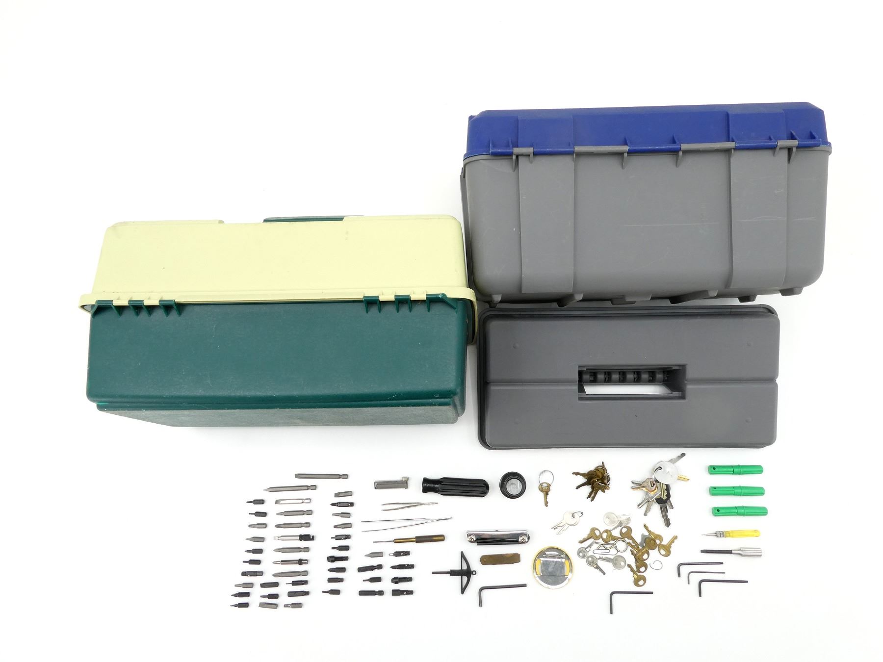 GUNSMITH / HOBBYIST TOOL AND TACKLE BOXES WITH ASSORTED TOOLS LOT