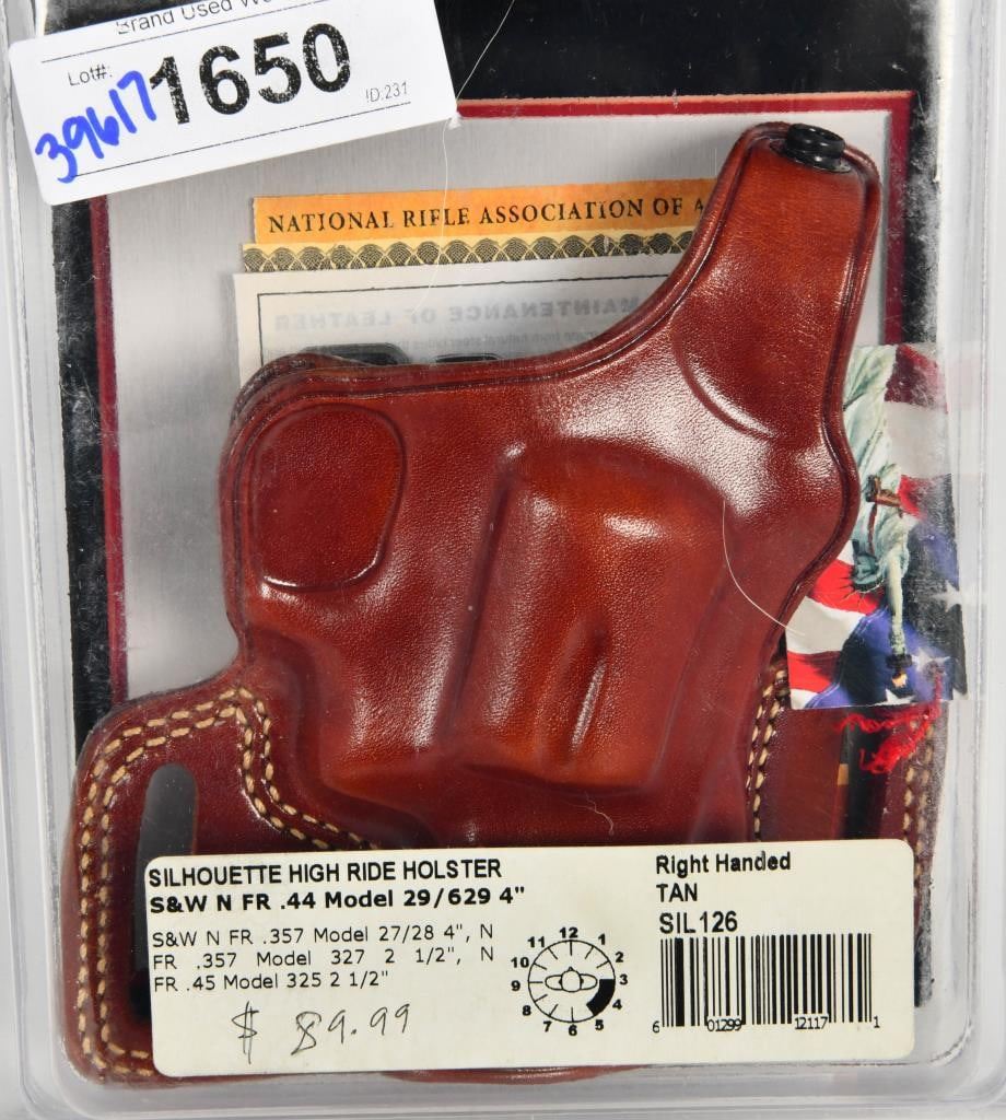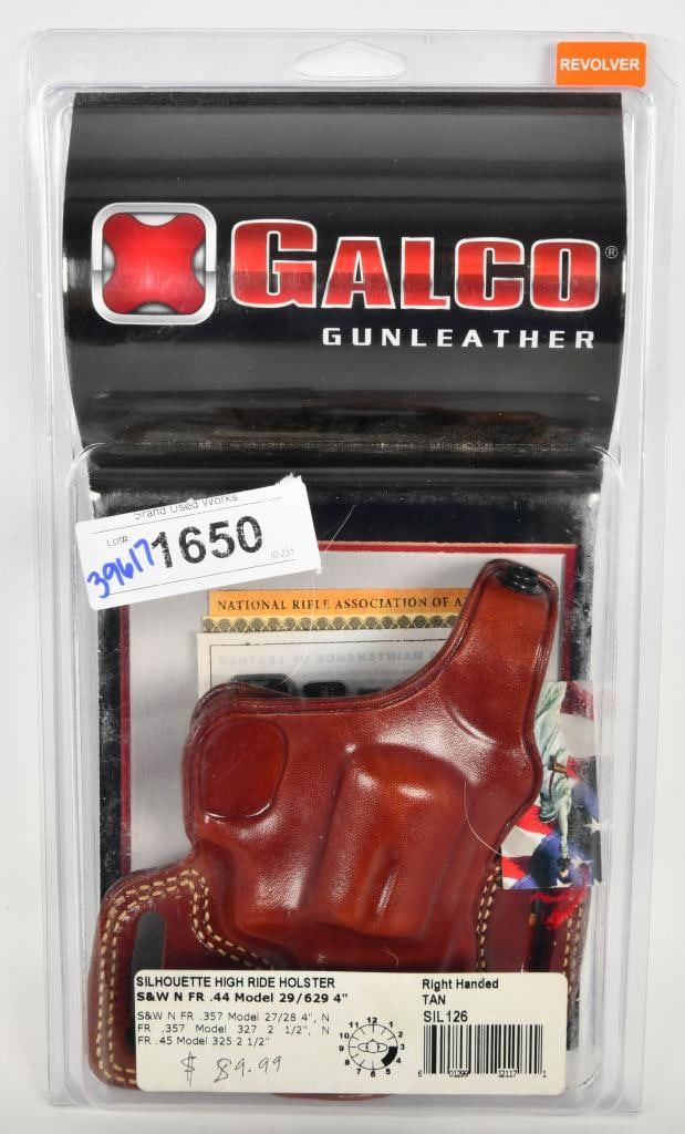 lot contains a new in the package Galco Gunleather Silhouette high ride Holster right hand, tan SIL 126. for S&W N frame .44 Mode 29 629 4" and S&W N frame .357 and Model 27/28 4" N frame model 327 and model 325.