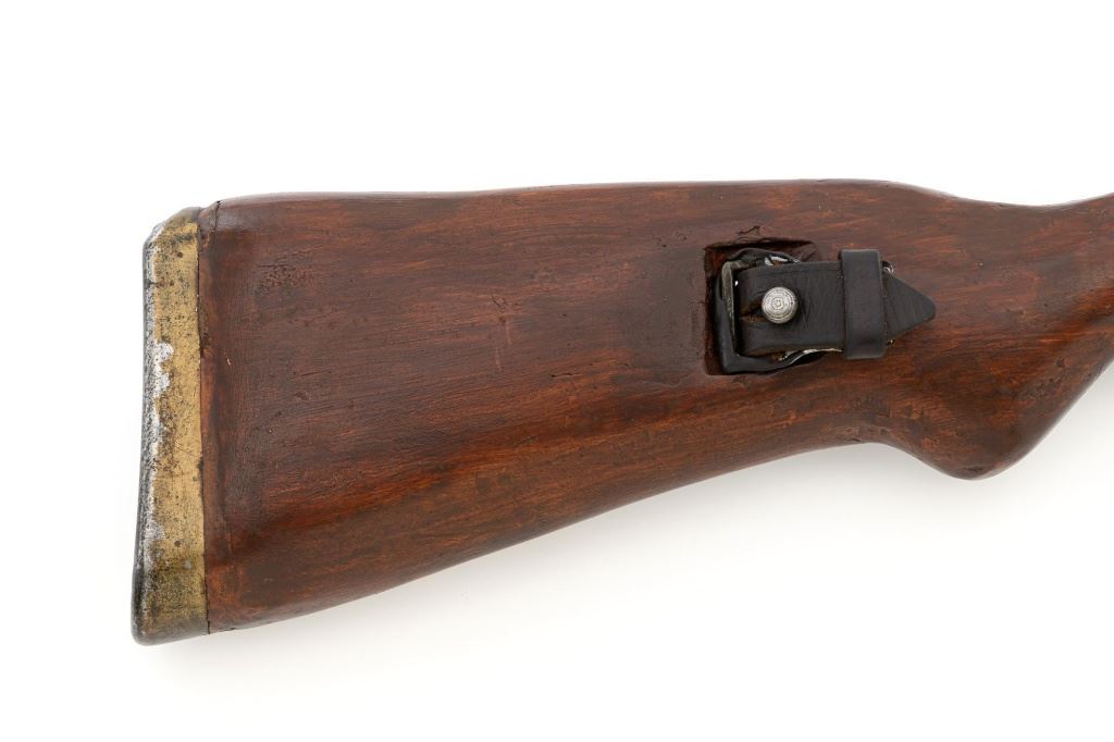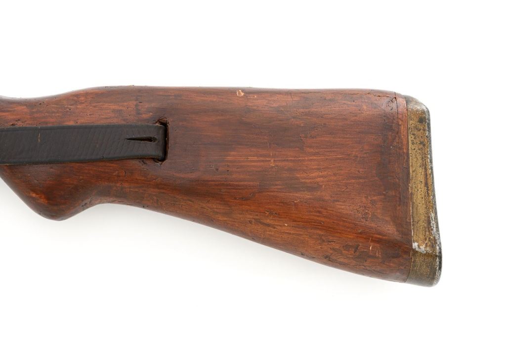 German Berlin Luebecker G41 Semi-Automatic Rifle, #5188R, 8x57mm cal., 23"barrel, blued finish, hardwood stock with cupped buttplate and plastic possibly "Durafol" handguard, blade front sight with attached hood, and adjustable tangent rear sight with "U"-notched groove, graduated to 1200 meters. Includes a steel cleaning rod and black leather sling. Sling is in good used condition, showing age and wear. Left side of the receiver is marked "G.41 duv 43./(eagle)214/5188e". There is an "(eagle)214" Waffenamt stamped on the rear bolt cover and bolt head. Bolt head and right side of the chamber with "(Nazi eagle)" firing proofs. Condition overall is very good, retaining approx. 70%-75% blue, with wear and toning to the gas trap, barrel bands, and magazine. Top of the receiver has been refinished. Stock is an old rough replacement, appearing unfinished, particularly around the pistol grip and buttplate. Condition is fair, wood shows light scratches and handling marks, with putty visible to the wrist and rear of the receiver. Handguard is in good condition, showing light scratches. Action operates smoothly. Bore has very good rifling. Est.: $2,000-$3,000. (C&R)