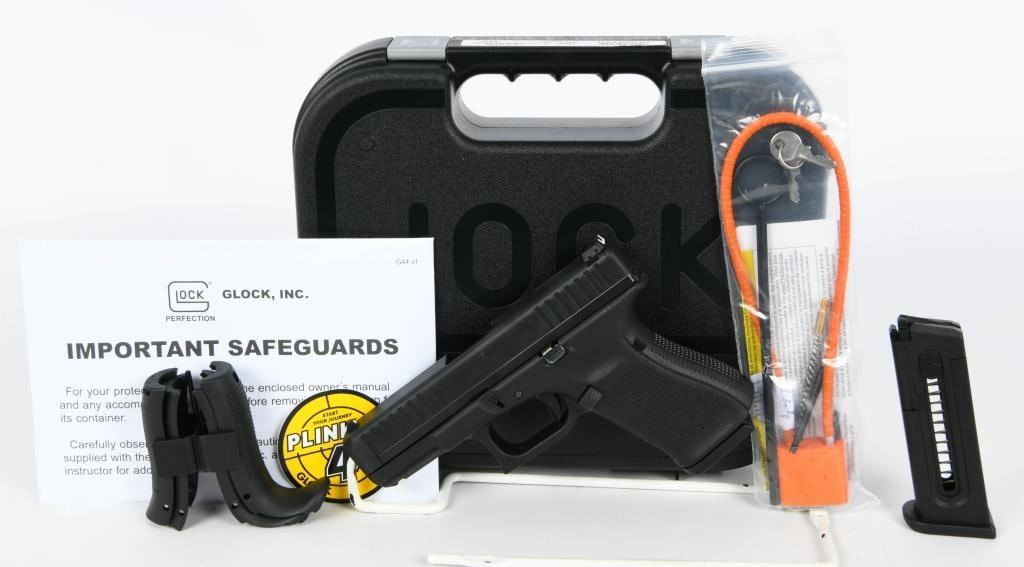 The Glock G44 .22 Compact is a highly versatile and reliable pistol, designed to deliver excellent performance, accuracy, and control. Here are some key features that make the Glock G44 a standout choice: Chambered in .22 LR, the pistol's .22 LR caliber offers low recoil, making it an ideal choice for new shooters and a cost-effective option for practice and training. Featuring a 4.02-inch barrel, the pistol's barrel length contributes to accuracy and precision, ensuring a well-balanced shooting experience. The innovative design of the hybrid steel-polymer slide provides durability and reduces overall weight, contributing to optimal control during shooting. The grip with a rough texture and interchangeable backstraps allows users to adapt the pistol to different hand sizes, enhancing comfort and control. Equipped with an adjustable rear sight, the pistol offers versatility, enabling shooters to customize their sight picture for improved accuracy. The polymer frame, a hallmark of Glock pistols, provides durability and contributes to the pistol's lightweight design. The inclusion of the Glock Marksman Barrel (GMB) enhances accuracy and precision, ensuring consistent and reliable performance. The Glock G44 comes with two 10-round magazines, providing an ample supply of ammunition for extended shooting sessions. The pistol has undergone thorough testing with a variety of ammunition to ensure maximum performance and reliability. Designed to adapt to nearly every hand size, the G44 offers different backstraps to accommodate individual preferences. Overall, the Glock G44 is an excellent choice for those looking for a reliable, accurate, and user-friendly pistol, especially for training and recreational shooting. If you have any specific questions or if there's anything else you'd like to know, feel free to ask!
