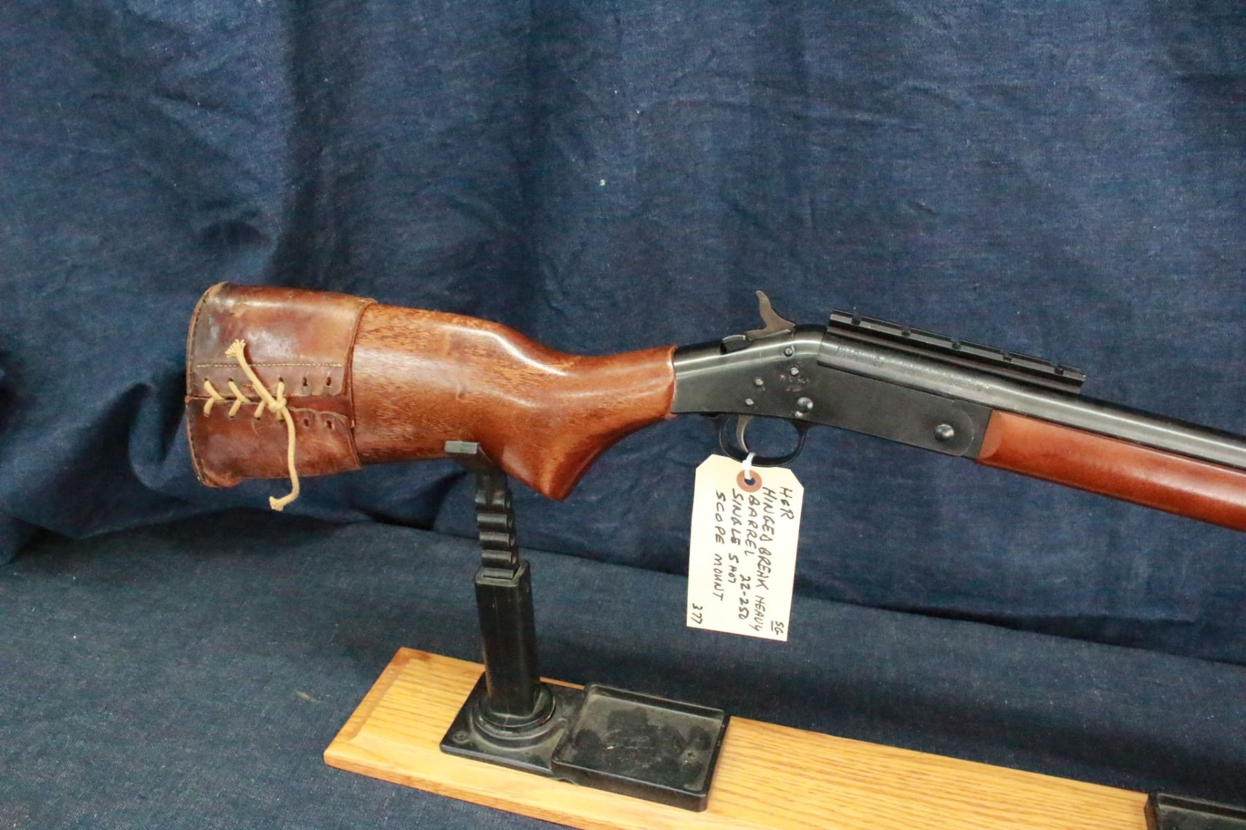 22-250 Rem.; Single Shot; 24" Heavy Barrel; Hinged Break; with Scope Mount; Missing one fore-end screw; Good Condition; S/N 390321