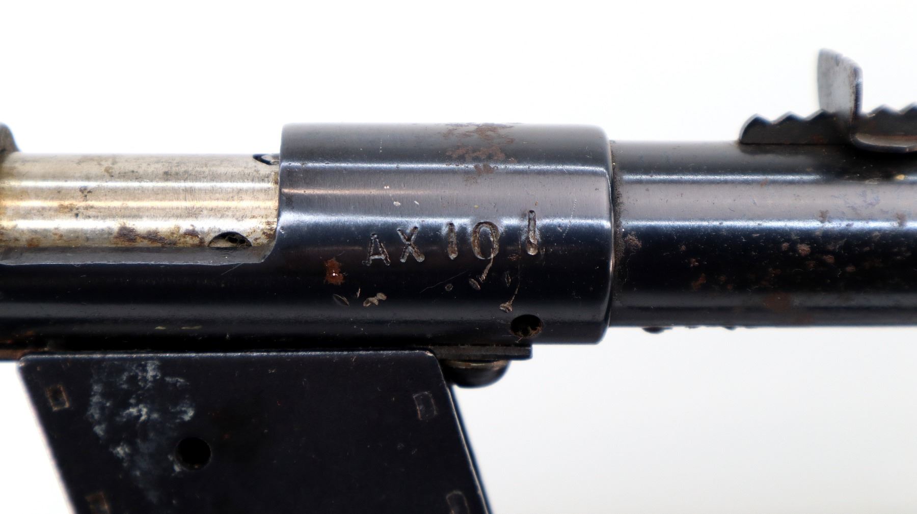Wear: Metal finish shows some pitting, light rust speckles, scratches, handling marks and wear.