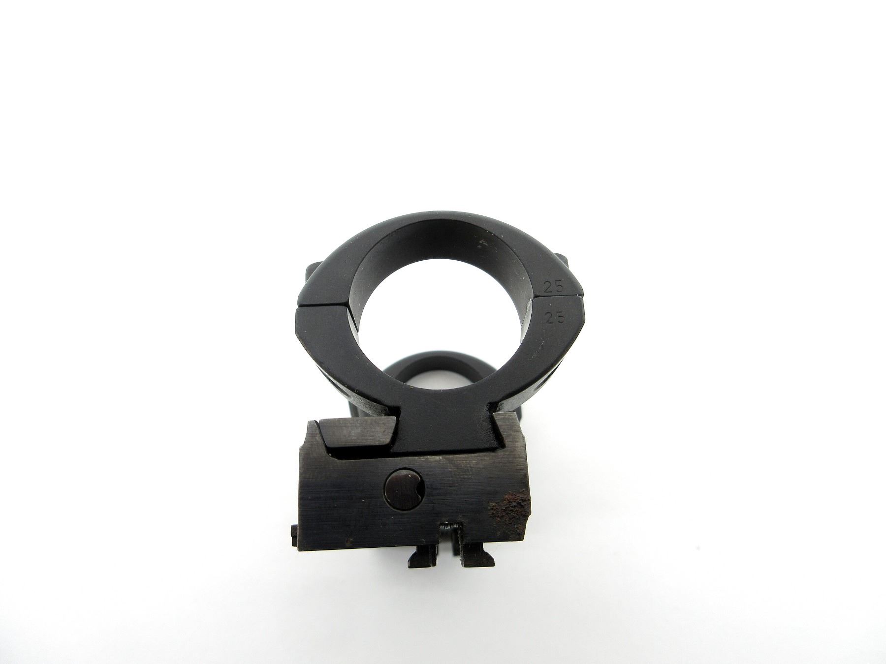 LOT INCLUDES; (1) SET OF 1" QD SCOPE RINGS, BLACK STEEL CONSTRUCTION, MARKED: "25", ATTACHED TO MOUNT BASE. MAY REQUIRE FITTING. SEE PHOTOS.